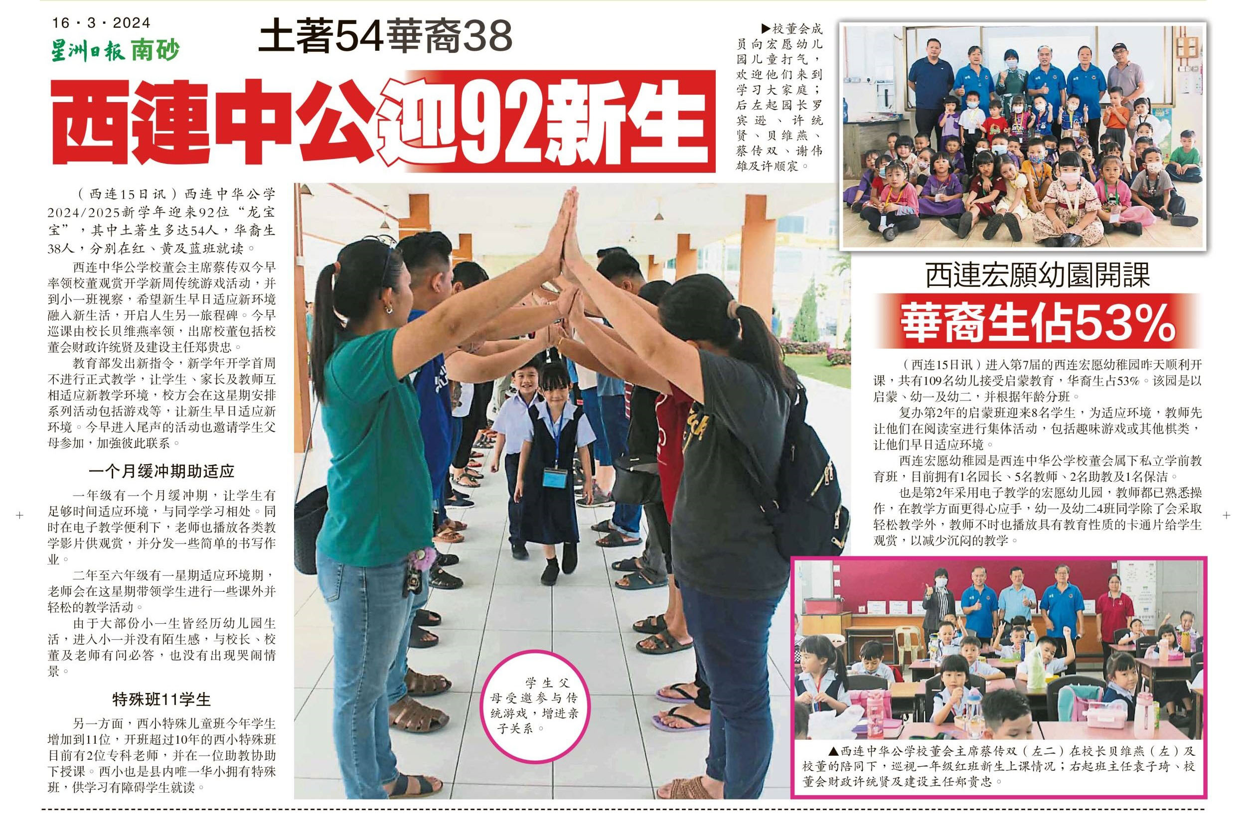 土著54华裔38 西连中公迎92新生