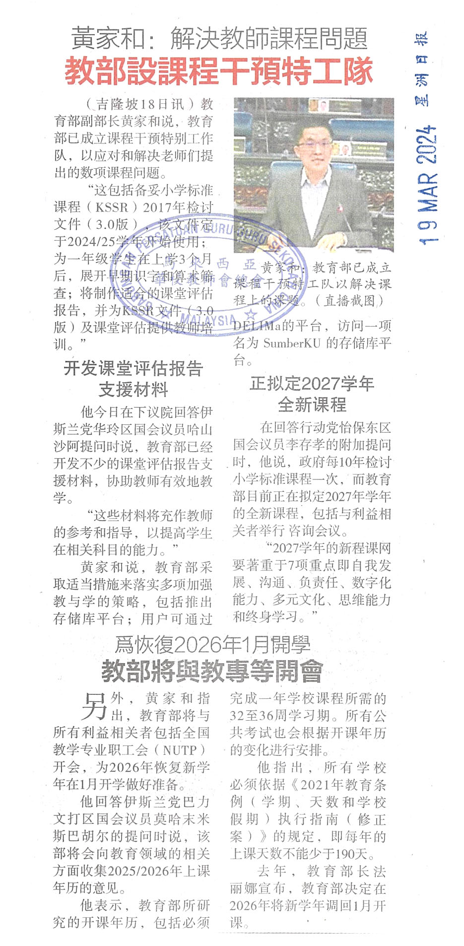 黄家和:解决教师课程问题 教部设课程干预特工队