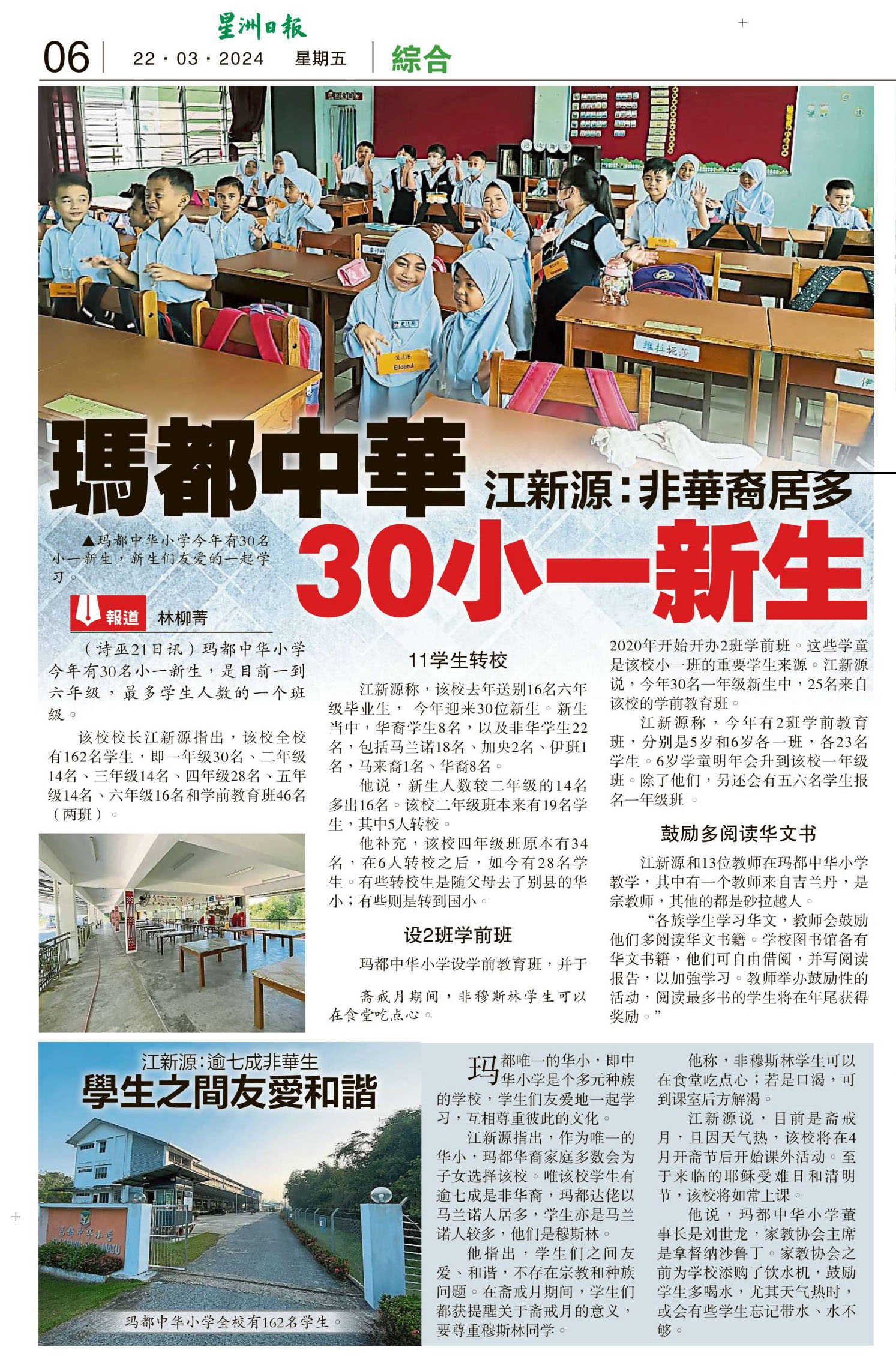 江新源:非华裔居多  玛都中华 30小一新生
