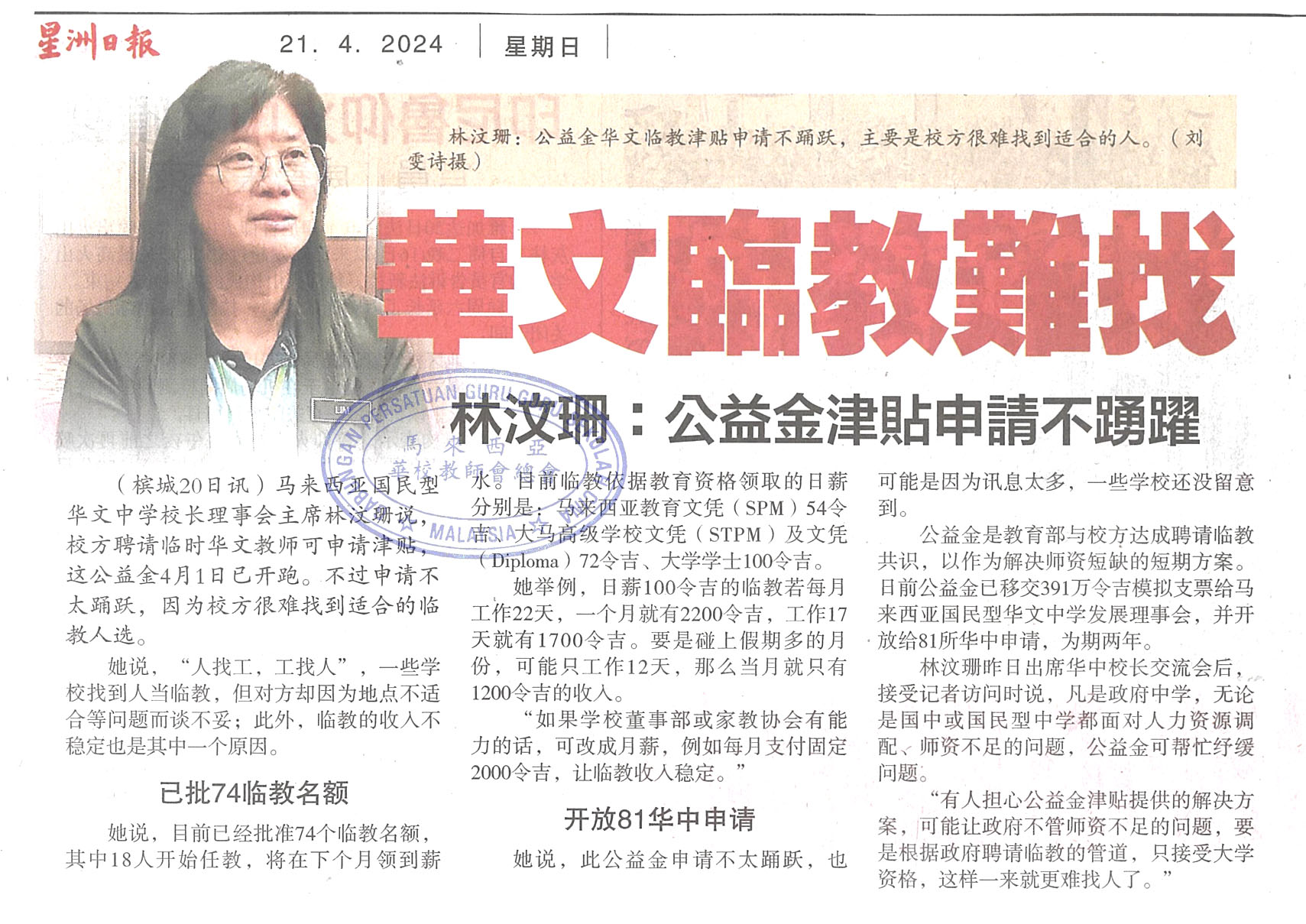 林汶珊:华文临教难找   公益金津贴申请不踊跃