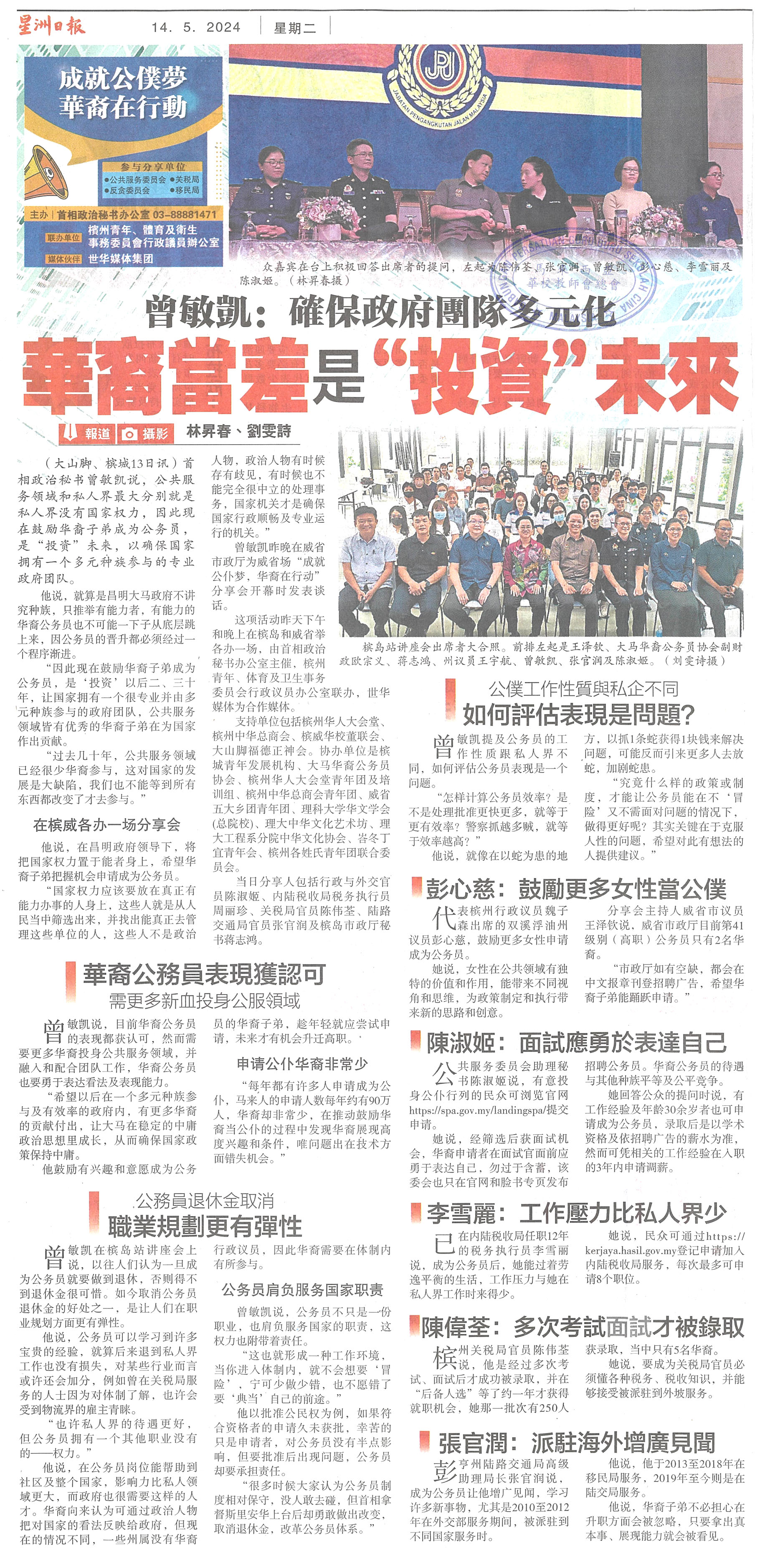曾敏凯:确保政府团队多元化 华裔当差是“投资”未来