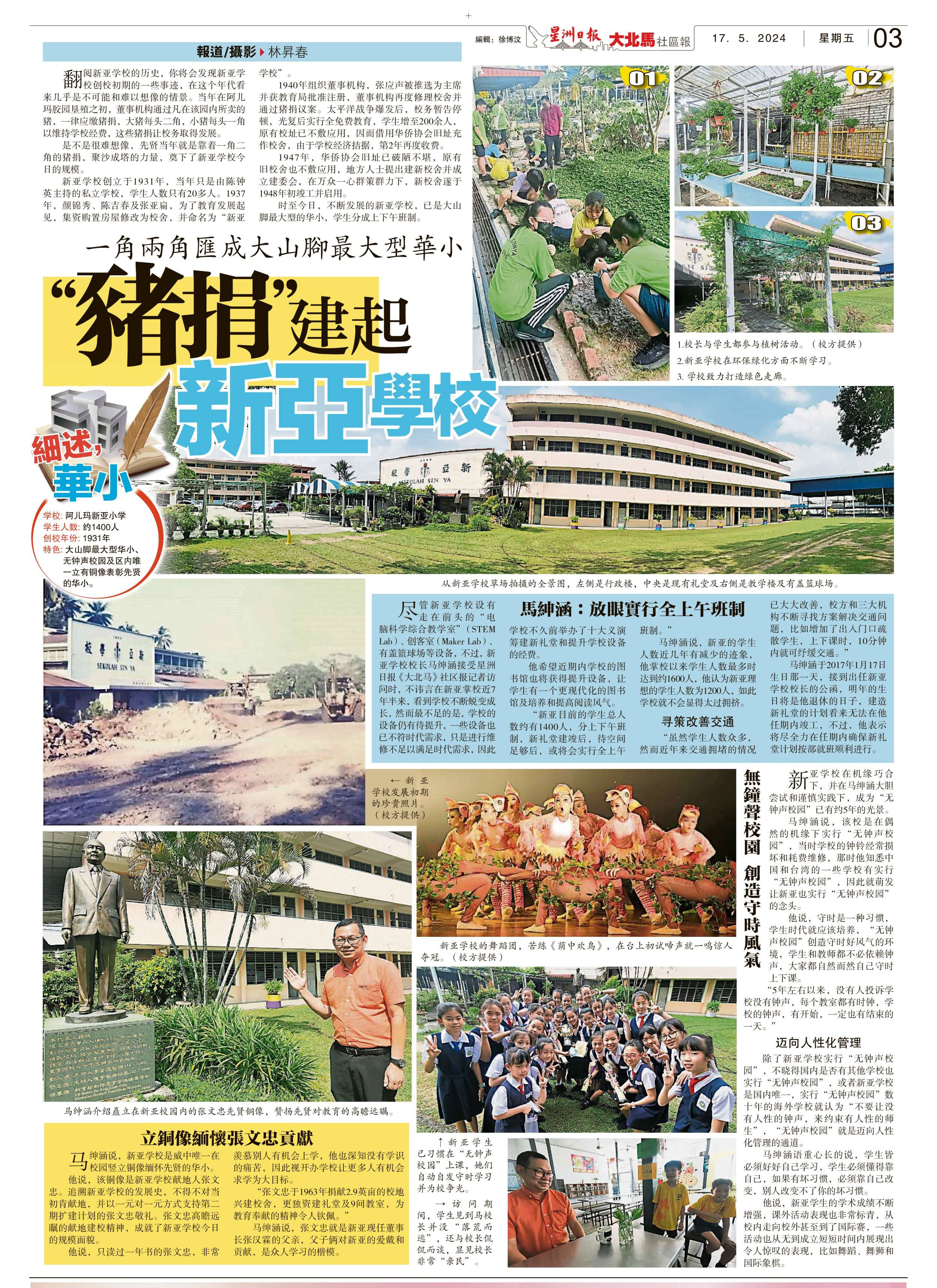 一角两角汇成大山脚最大型华小“猪捐”建起新亚学校