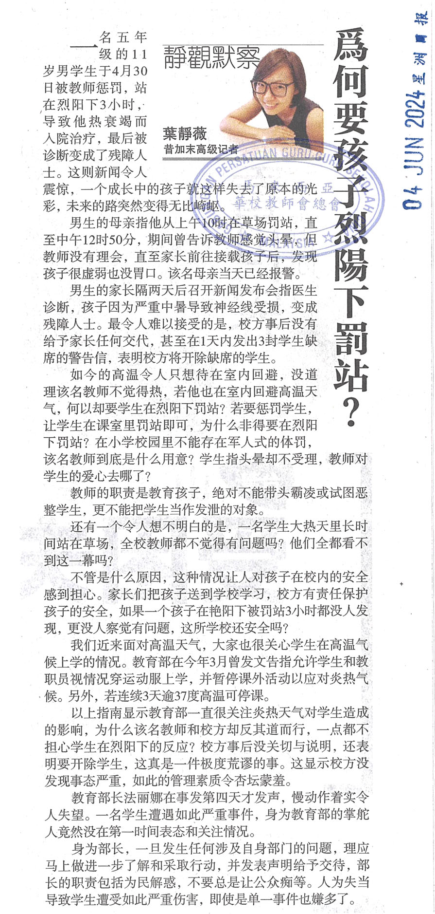 体罚学生新闻评论剪报