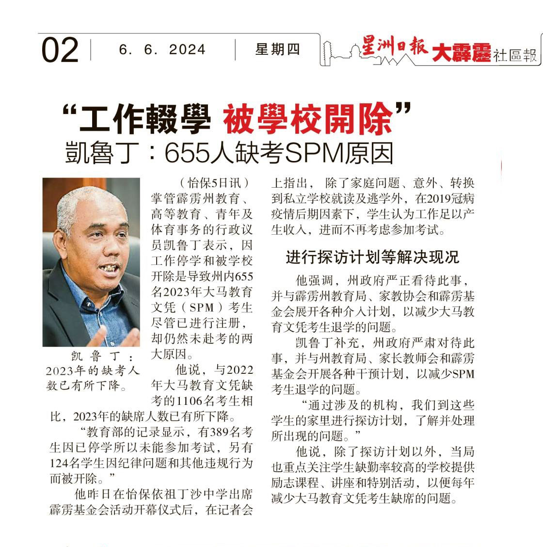 "工作辍学 被学校开除“ 凯鲁丁:655人缺考SPM原因 WhatsApp 上一篇文章: 柔培才华小23日开课 黄家和:首批料273人入学 上一页 下一篇文章: 槟城 11华中董事会家协联署 促撤强制开国语数理班 下一页