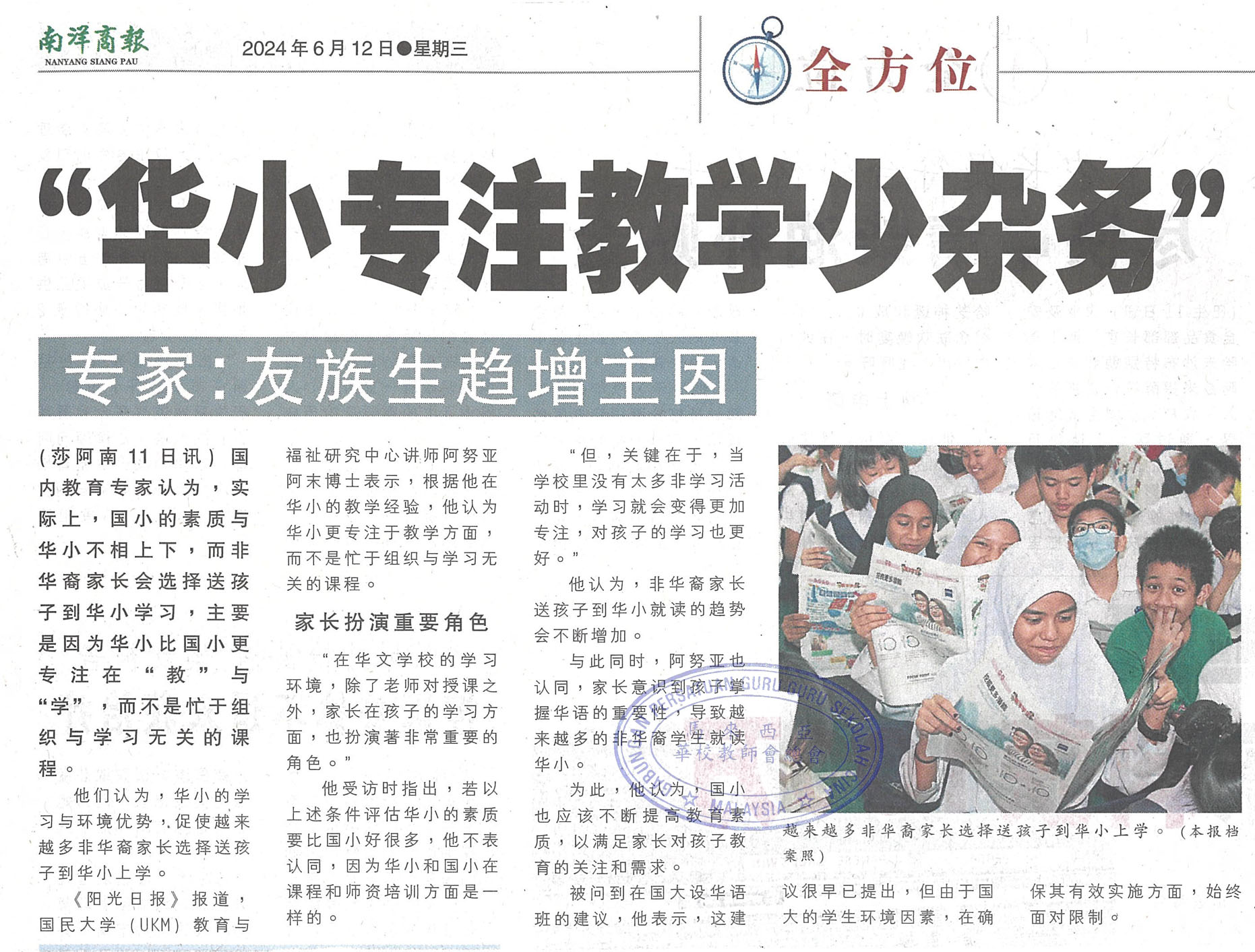 专家:“华小专注教学少杂务” 友族生趋增主因教数理
