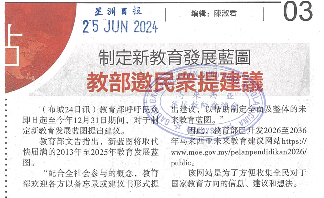 教部邀民众提建议 制定新教育发展蓝图