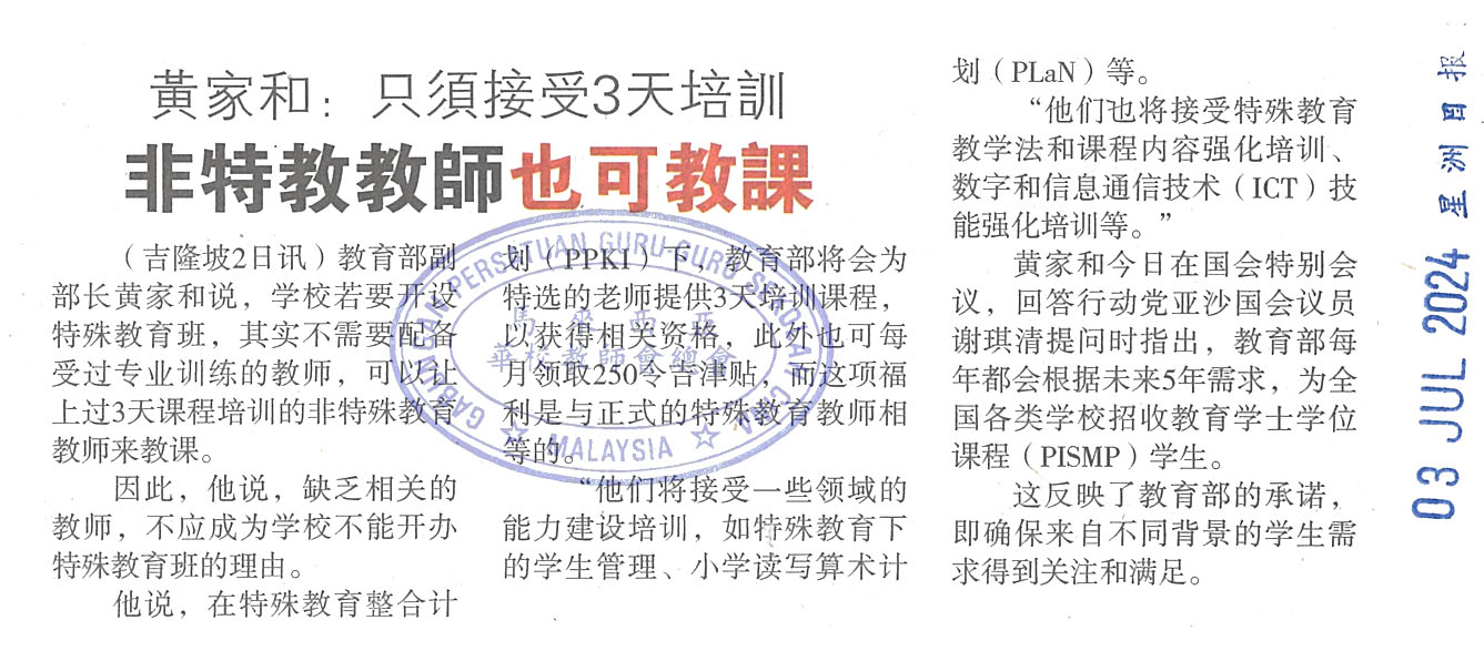 黄家和:只须接受3天培训 非特教教师也可教课