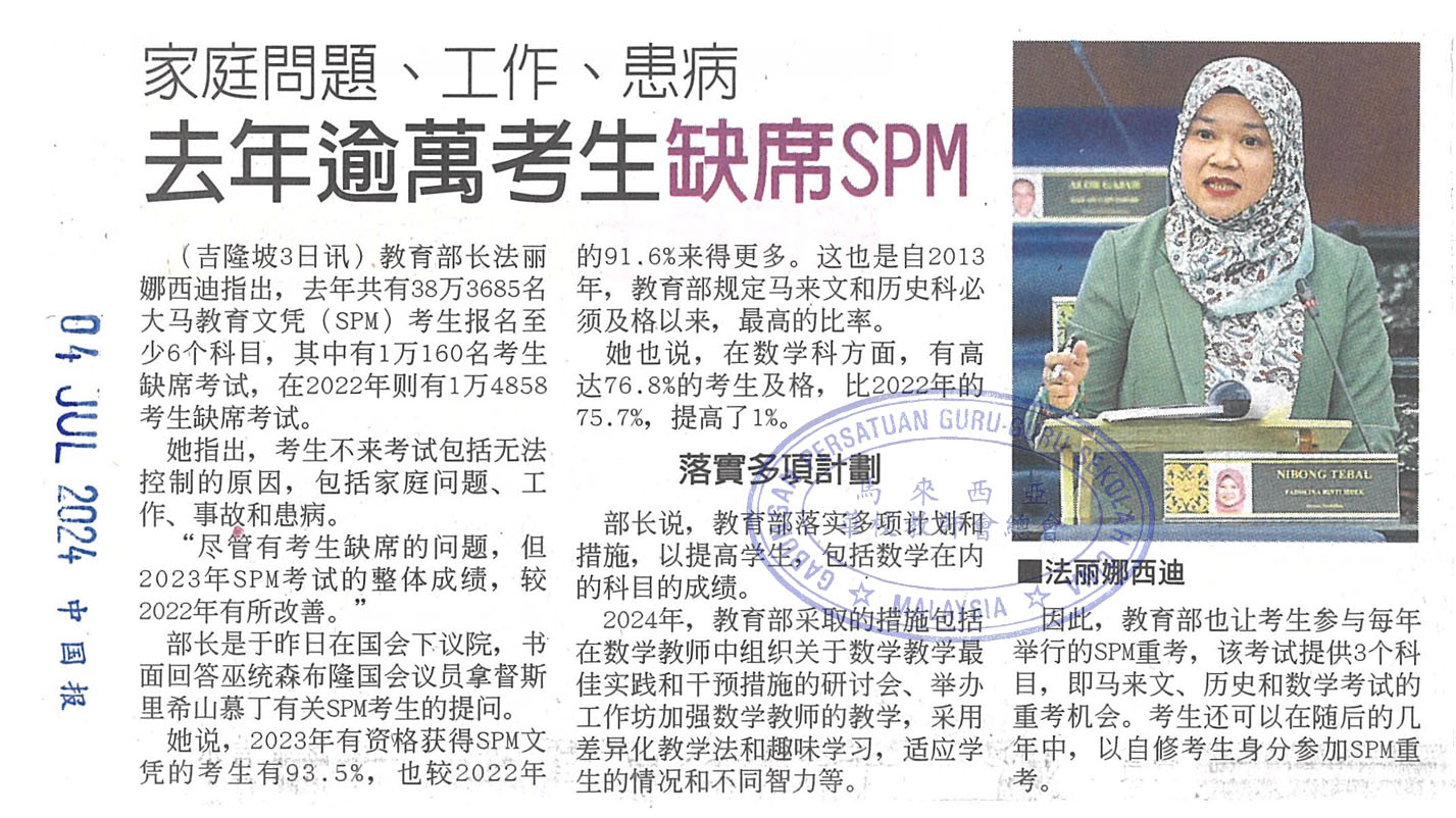 家庭问题、工作、患病 去年逾万考生缺席SPM