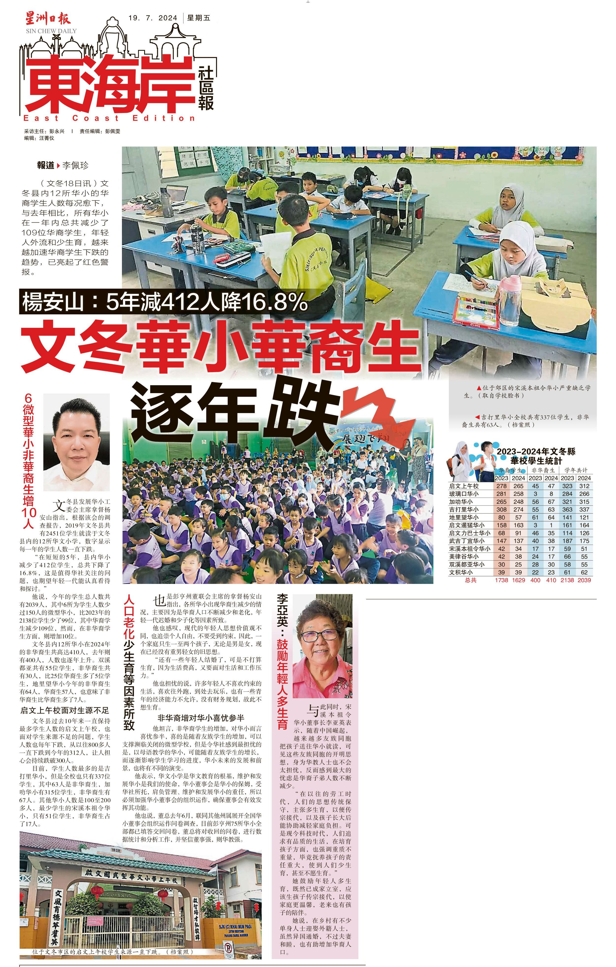 文冬华小华裔生逐年跌