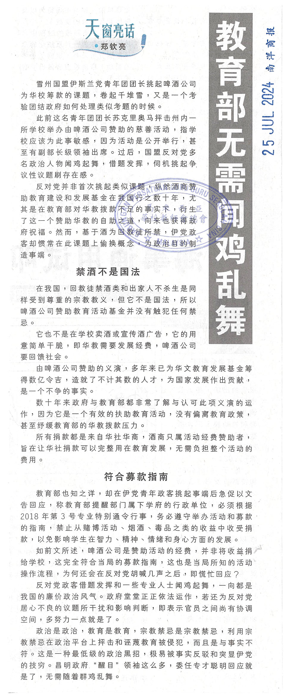 禁学校收烟酒赌业捐款课题剪报