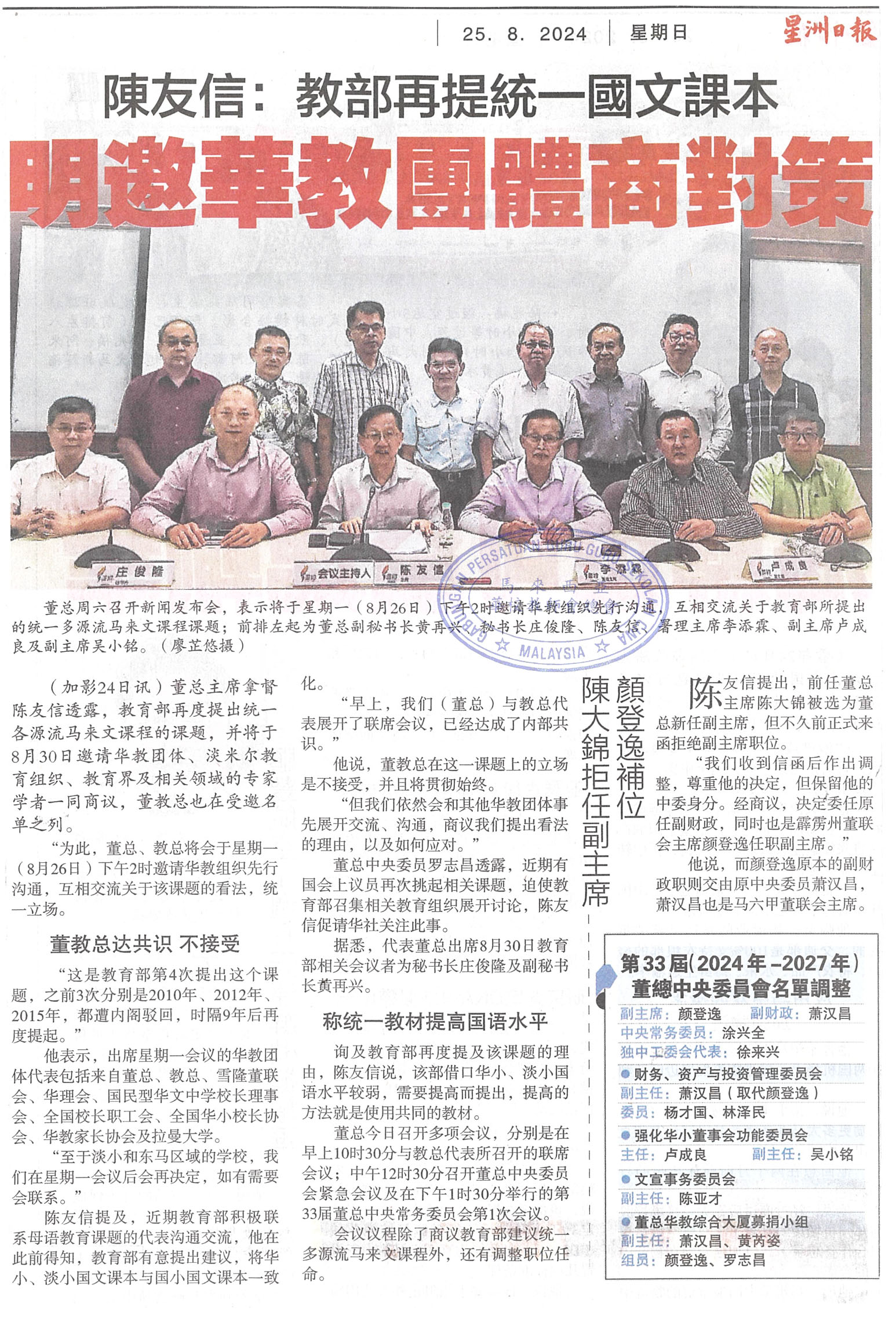 陈友信:教部再提统一过国文课本 明邀华教团体商对策