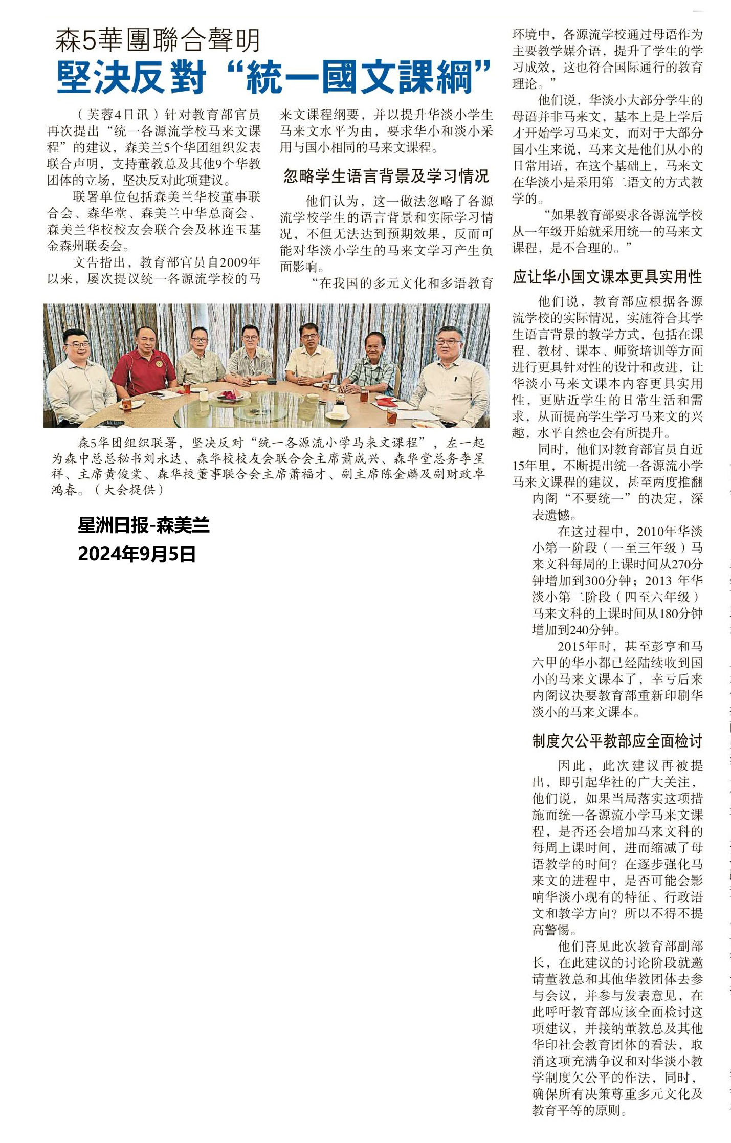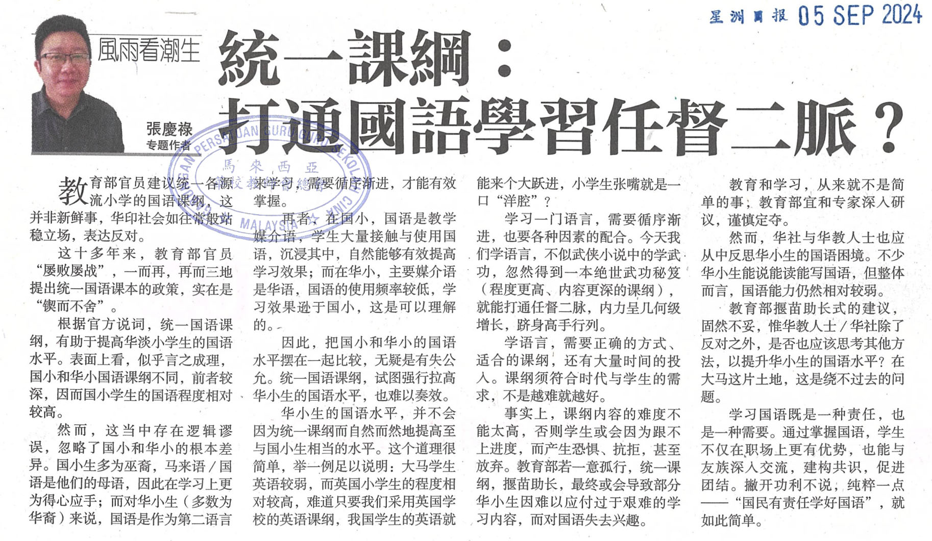 教育部统一各源流小学马来文课程新闻剪报