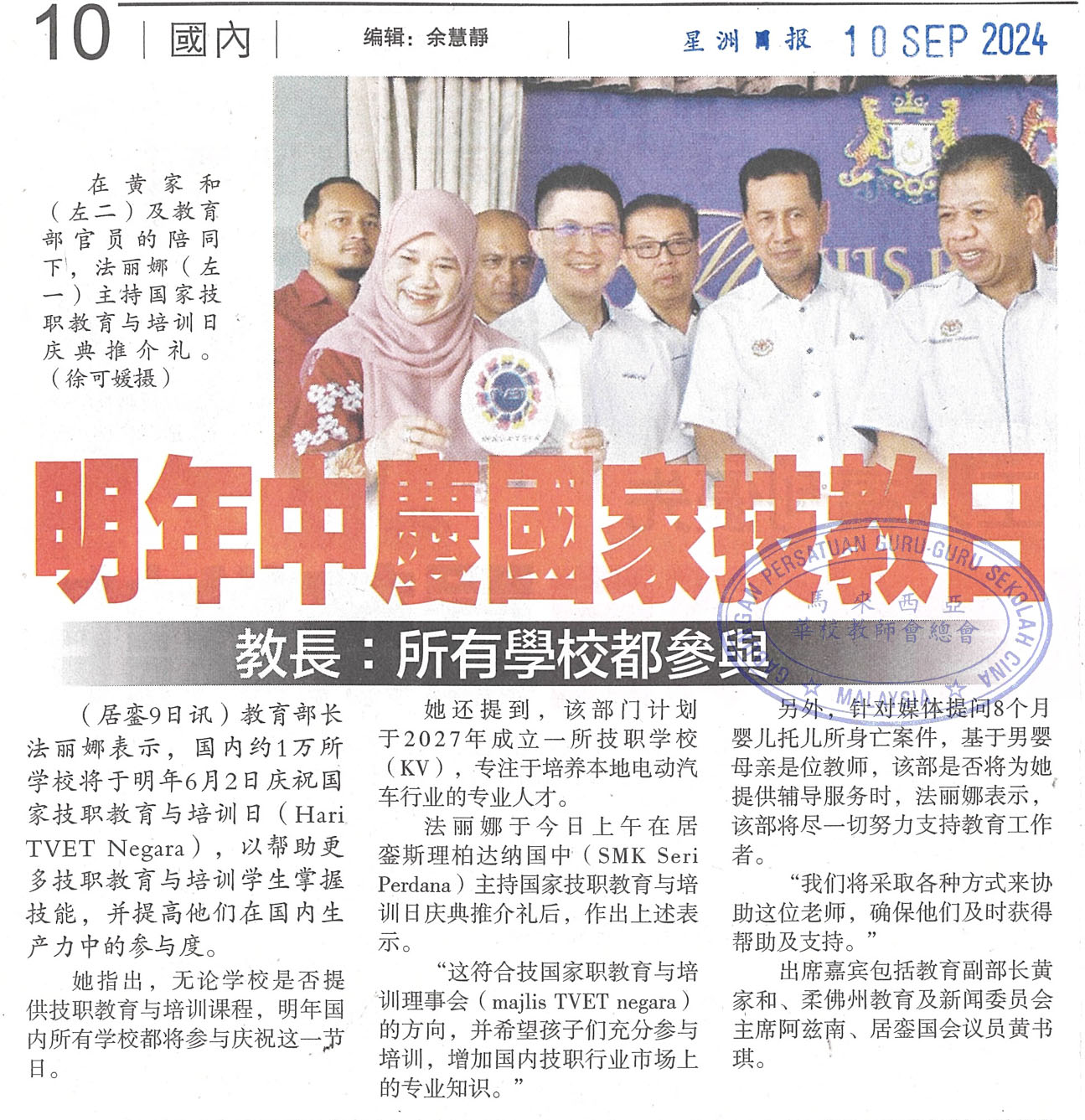 明年中庆国家技教日 教长:所有学校都参与
