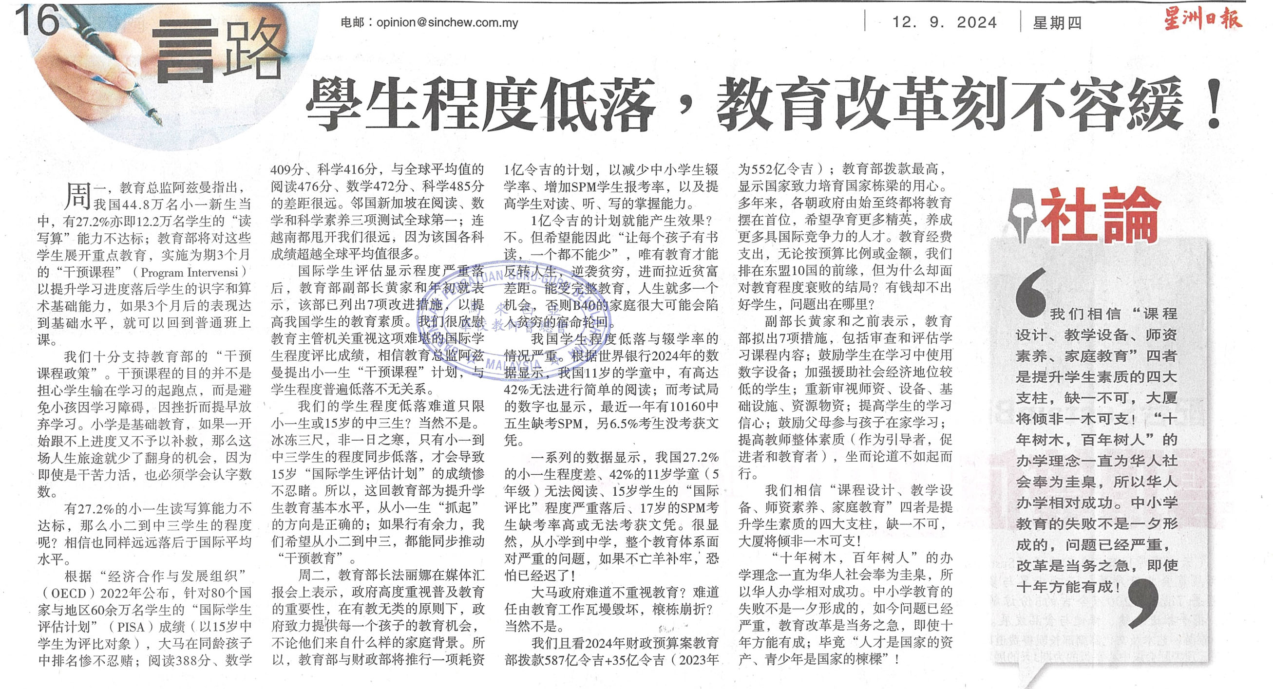 下一篇文章: 教部财部27日推介计划斥资1亿减低辍学率