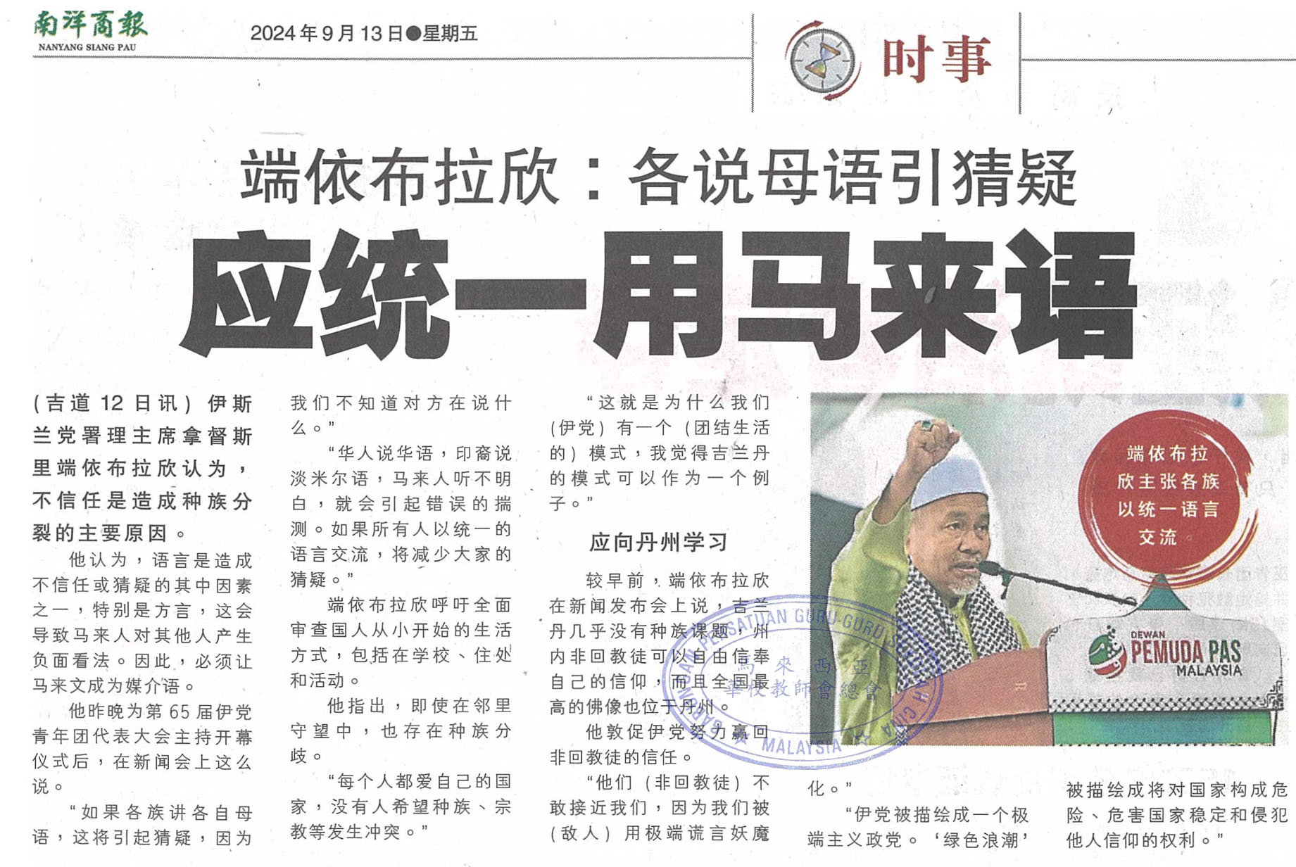 端依布拉欣:各说母语引猜疑  应统一用马来语