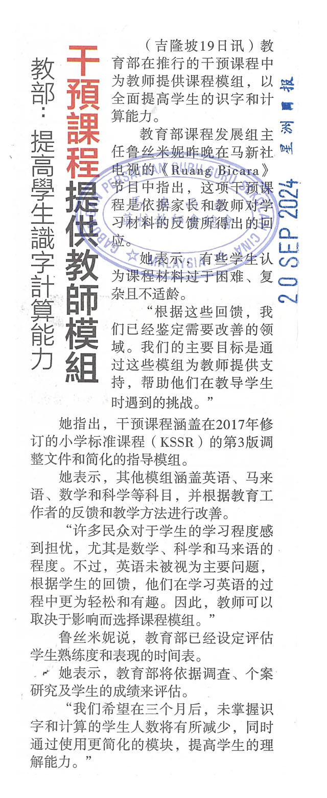 教育部:提高学生识字计算能力 干预课程提供教师模组