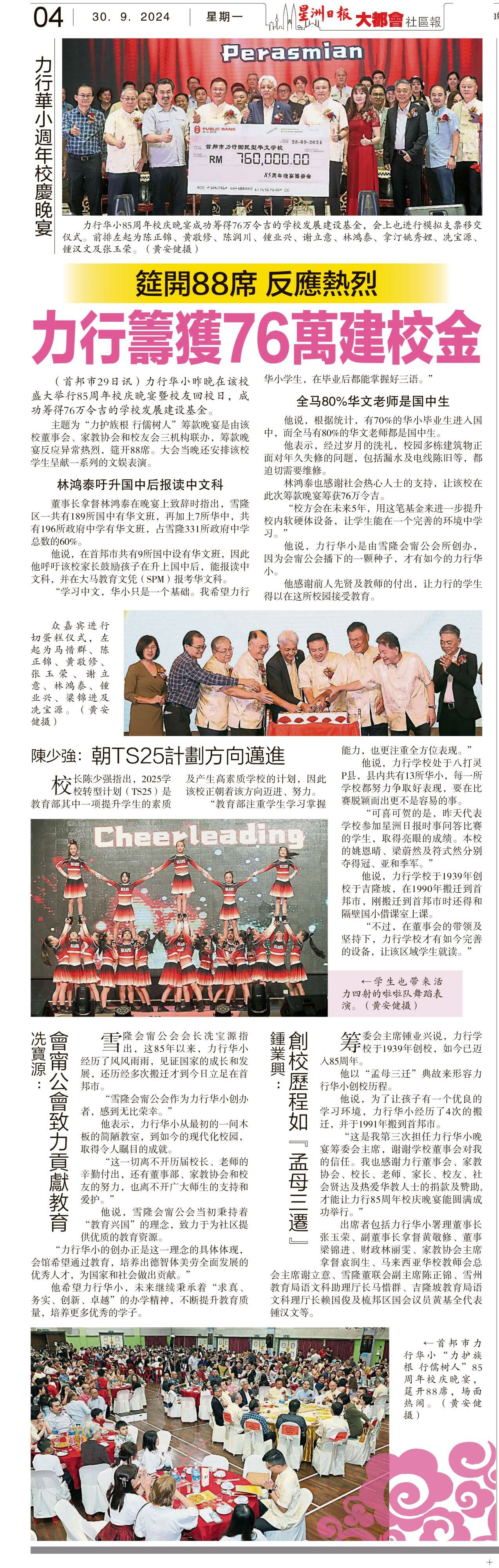 筵开88席反应热烈 力行筹获76万建校金