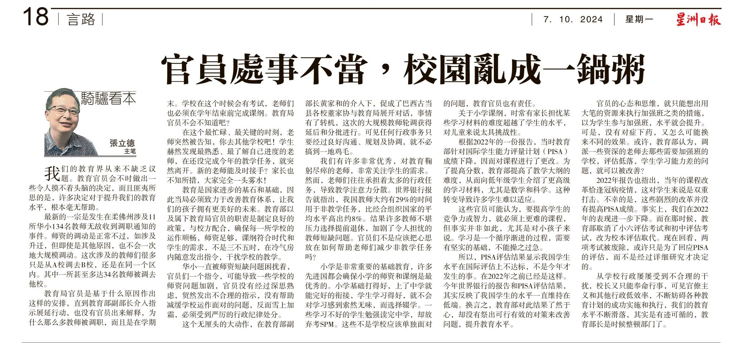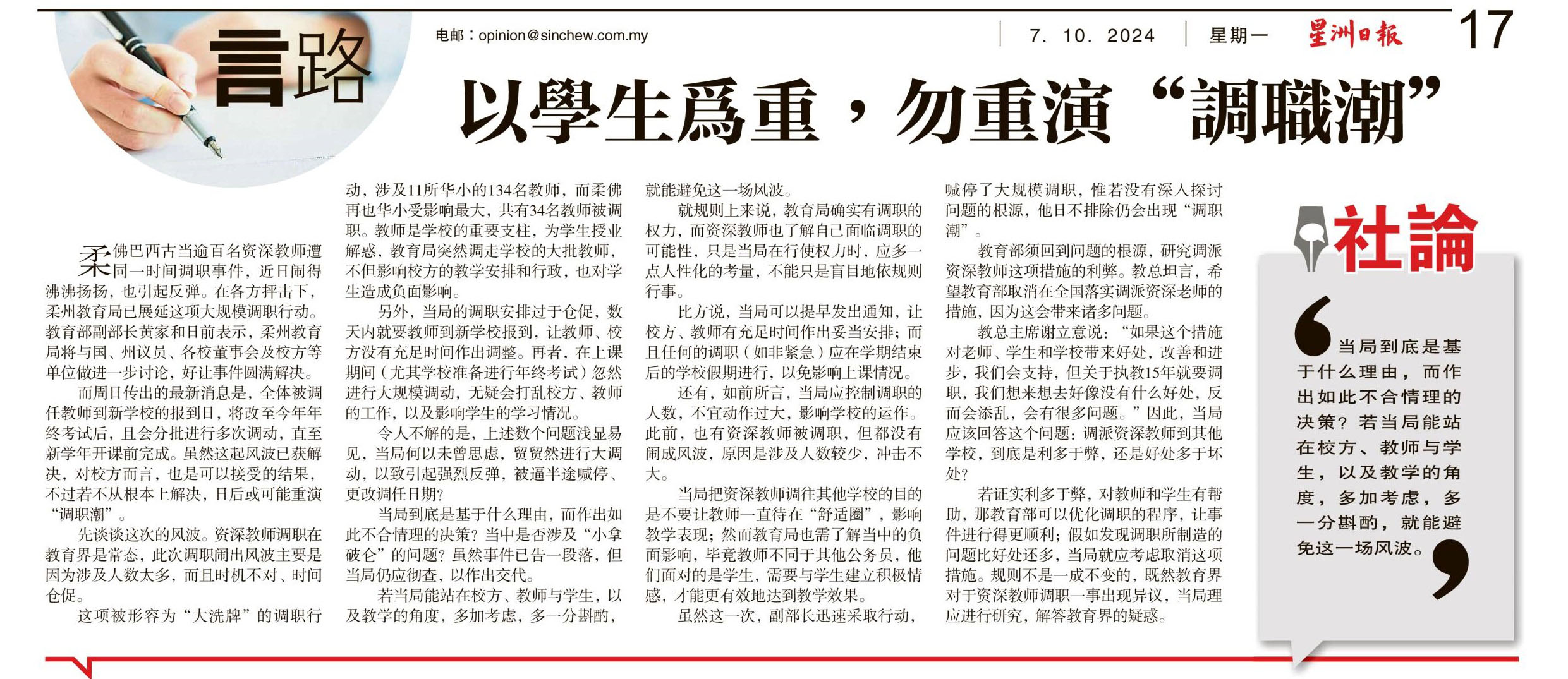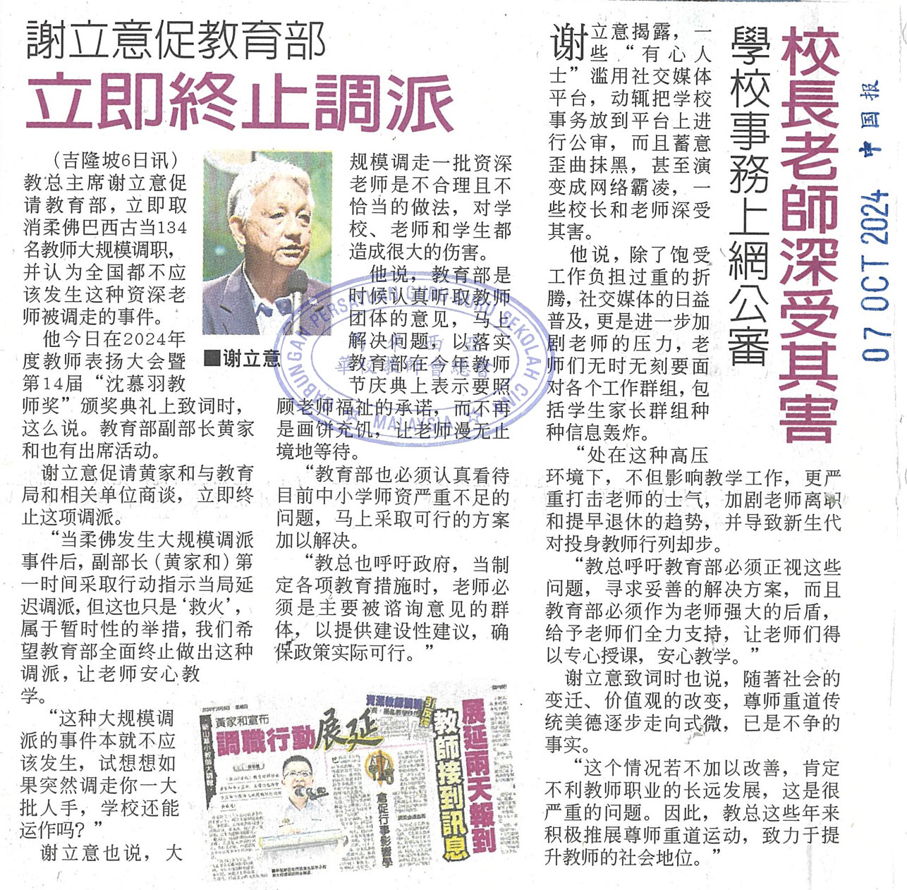 柔佛华小教师大调职新闻剪报