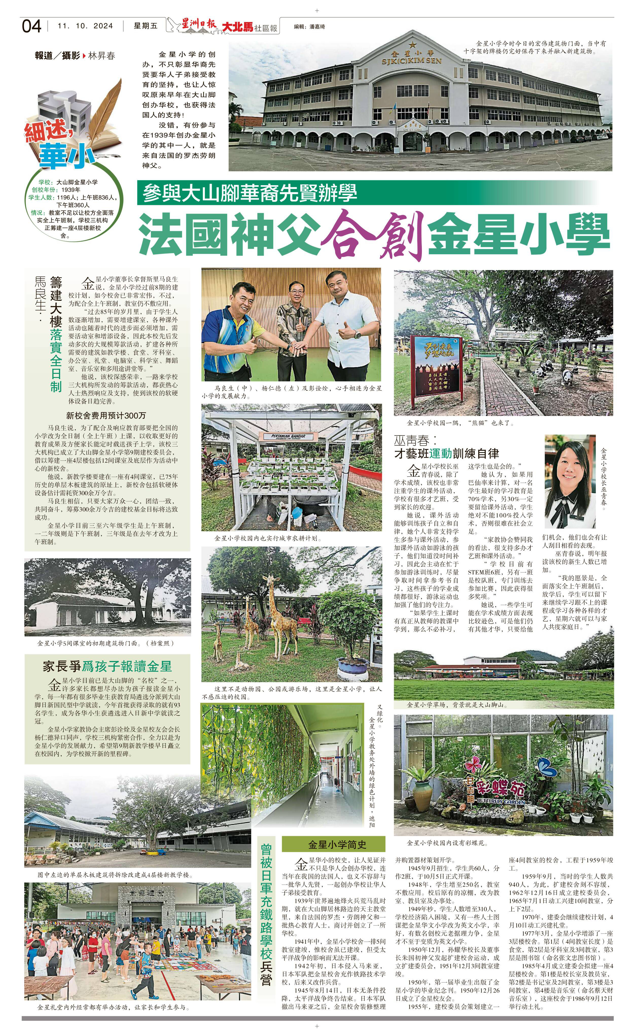 参与大山脚华裔先贤办学 法国神父合创金星小学