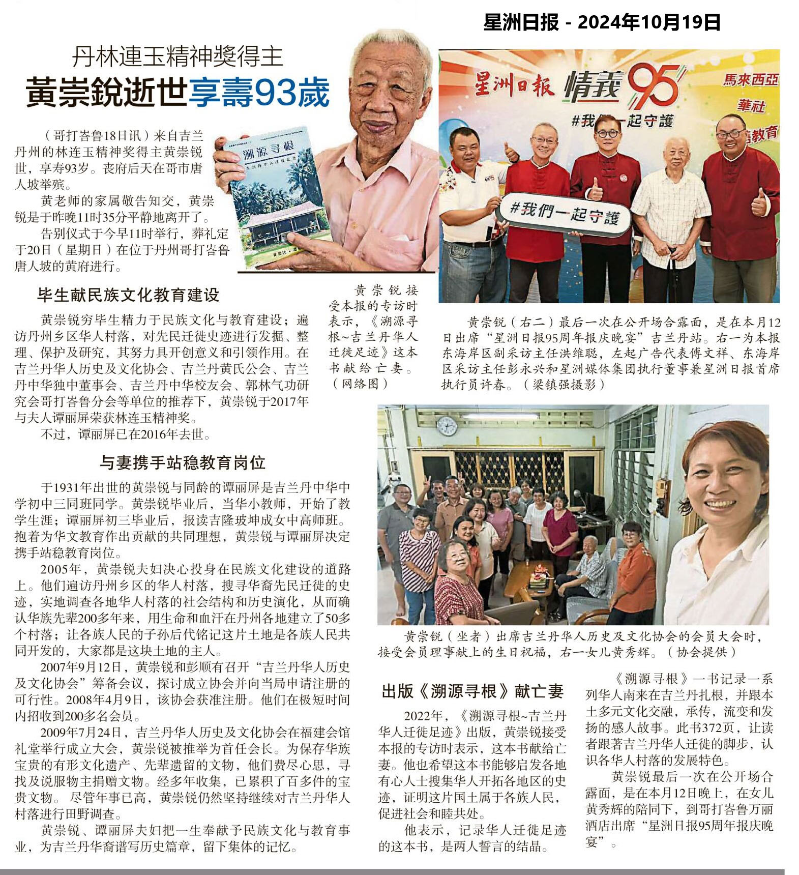 丹林连玉精神奖得主 黄崇锐逝世享寿93岁