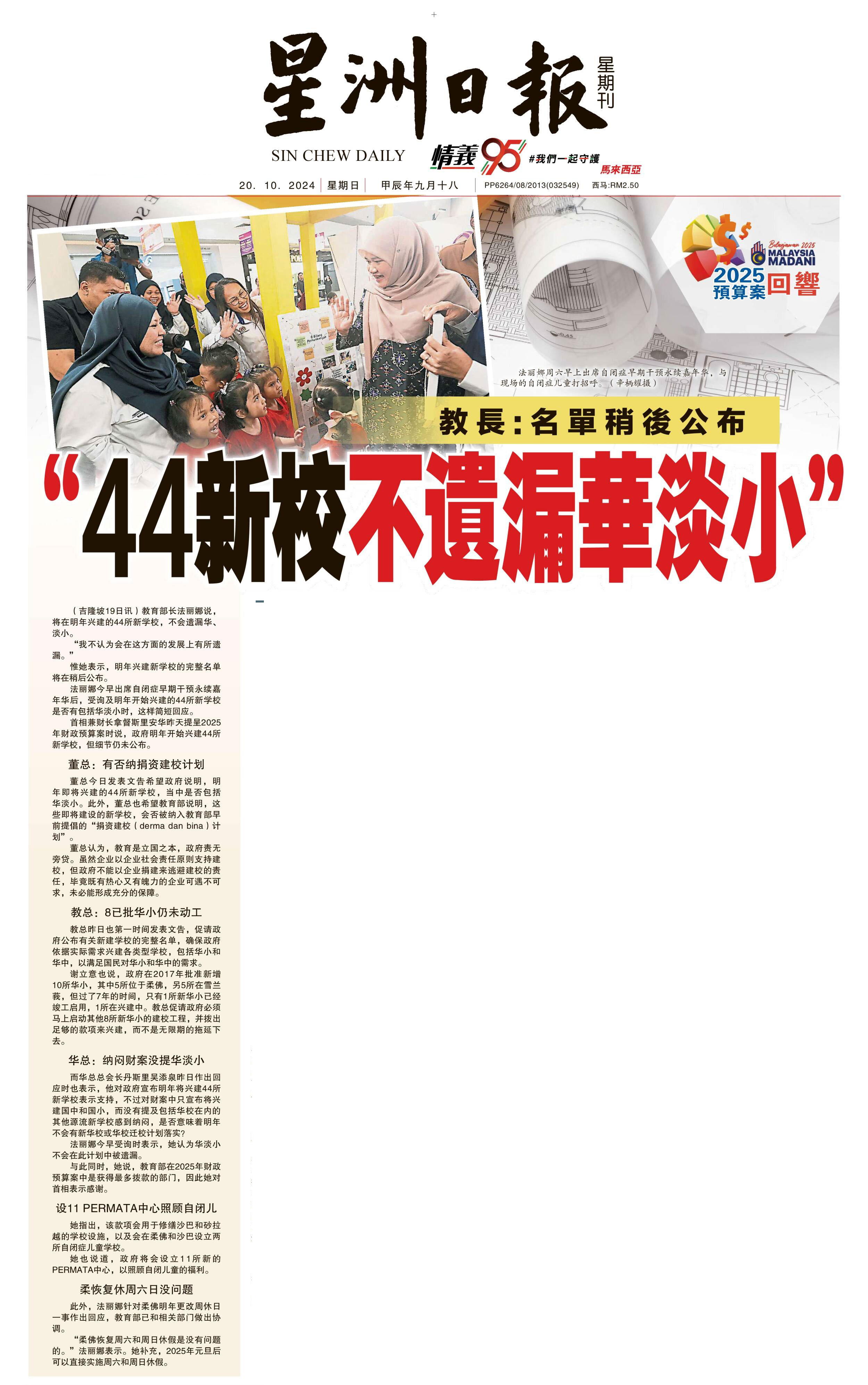 教长:名单稍后公布"44新校不遗漏华淡小" WhatsApp 上一篇文章: 谢立意:增建新华小数目不详 应先拨款完成10+6 上一页 下一篇文章: 董总:盼支援3民办高等学府 学校拨款细节应列明 下一页