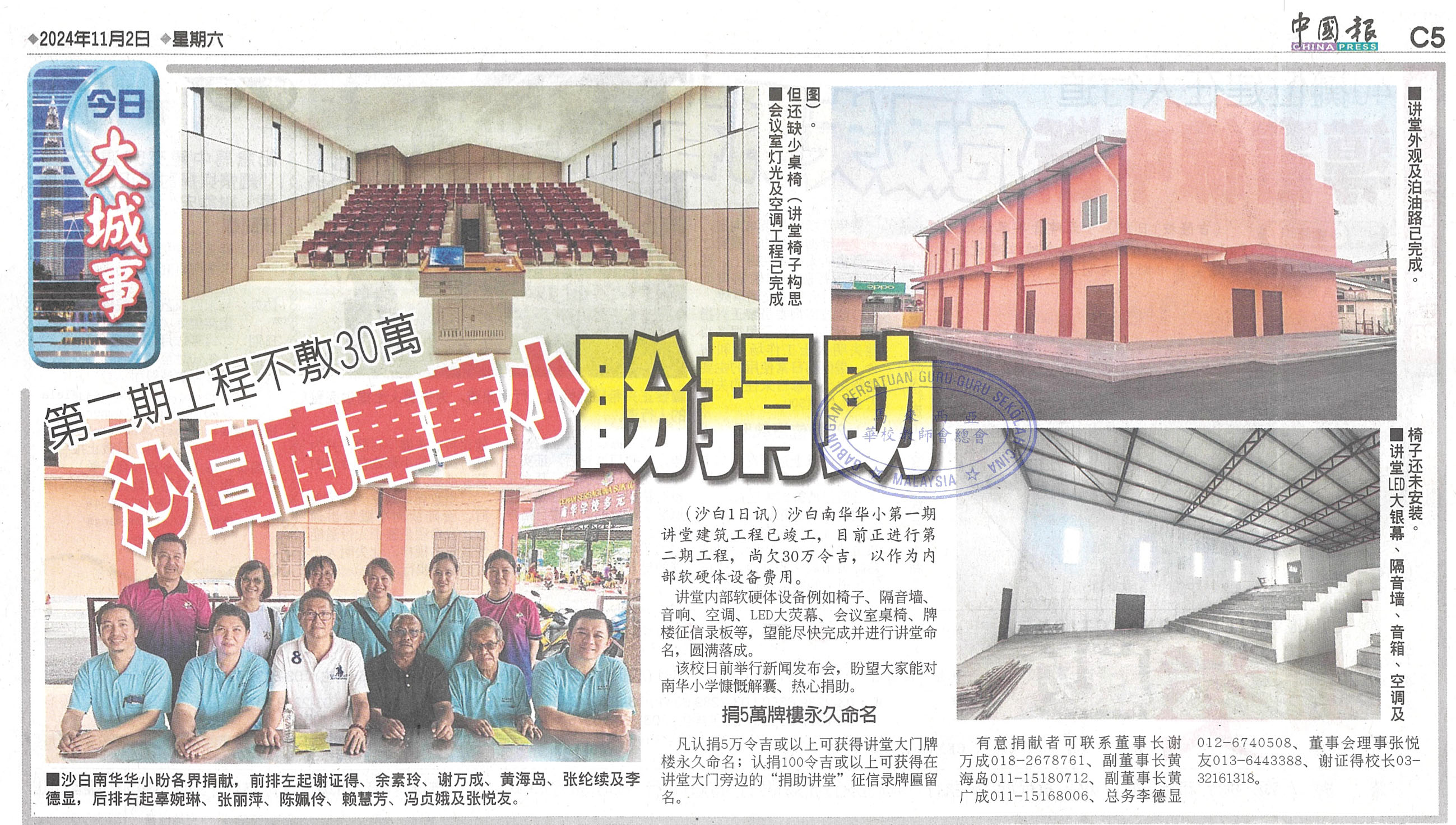 沙白南华华小第二期工程不敷30万盼捐助