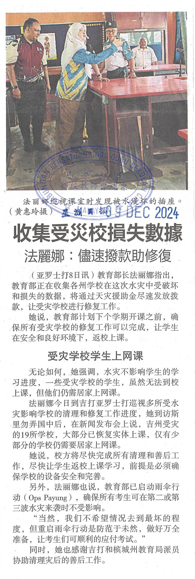法丽娜:尽速拨款助修复 收集受灾校损失数据