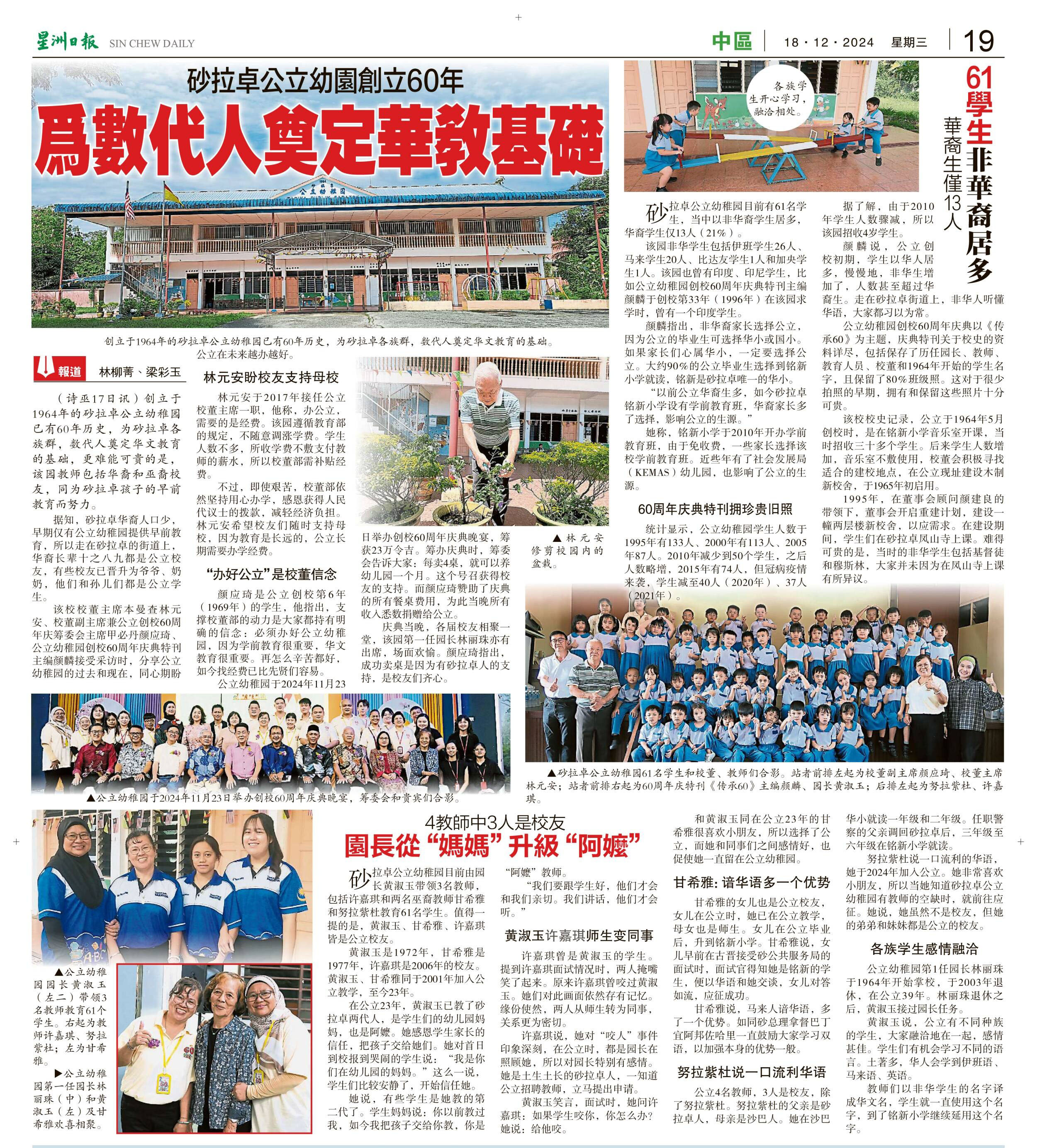 砂拉卓公立幼园创立60年 为数代人奠定华教基础