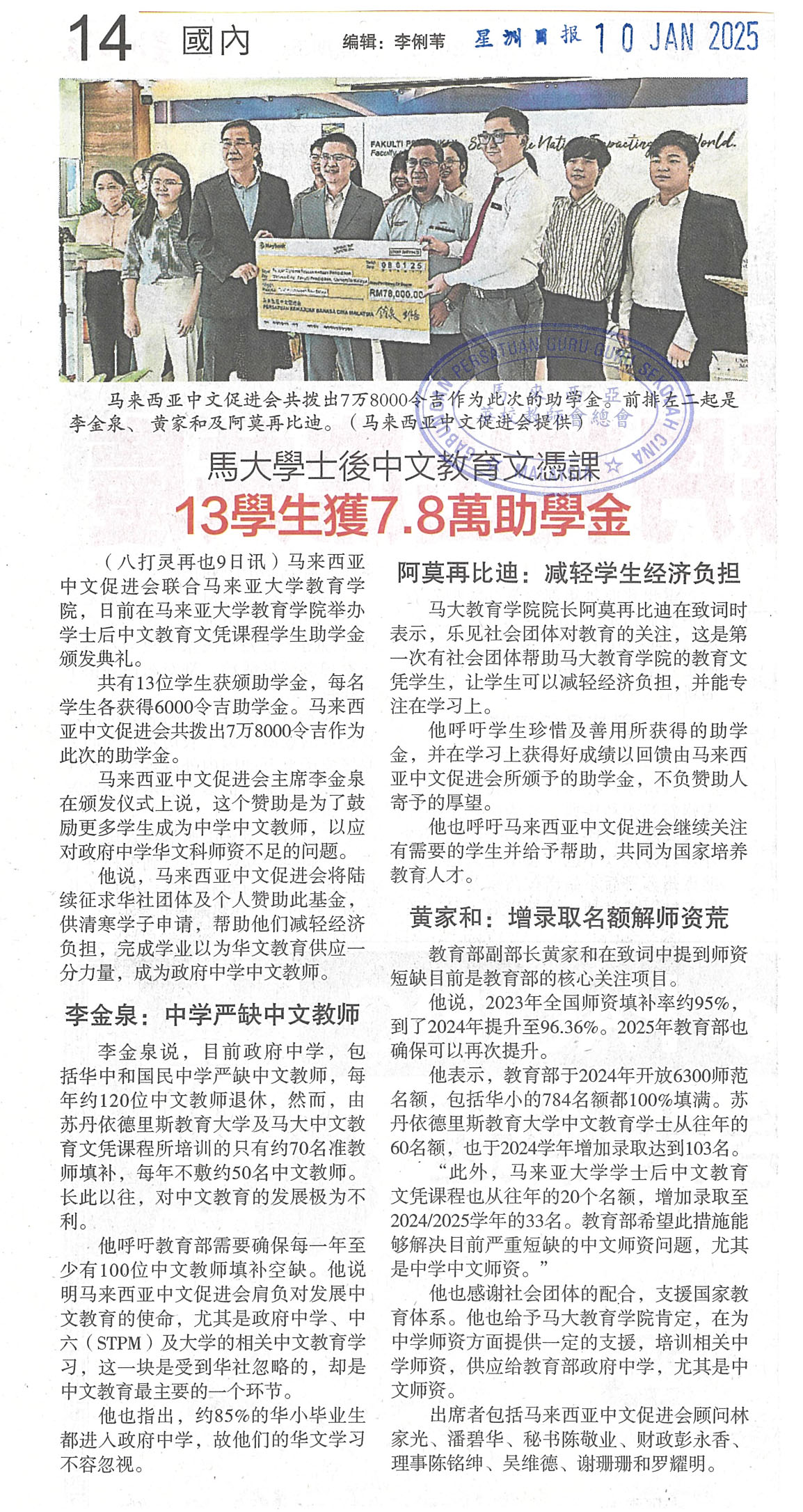 马大学士后中文教育文凭课  13学士获7.8万助学金
