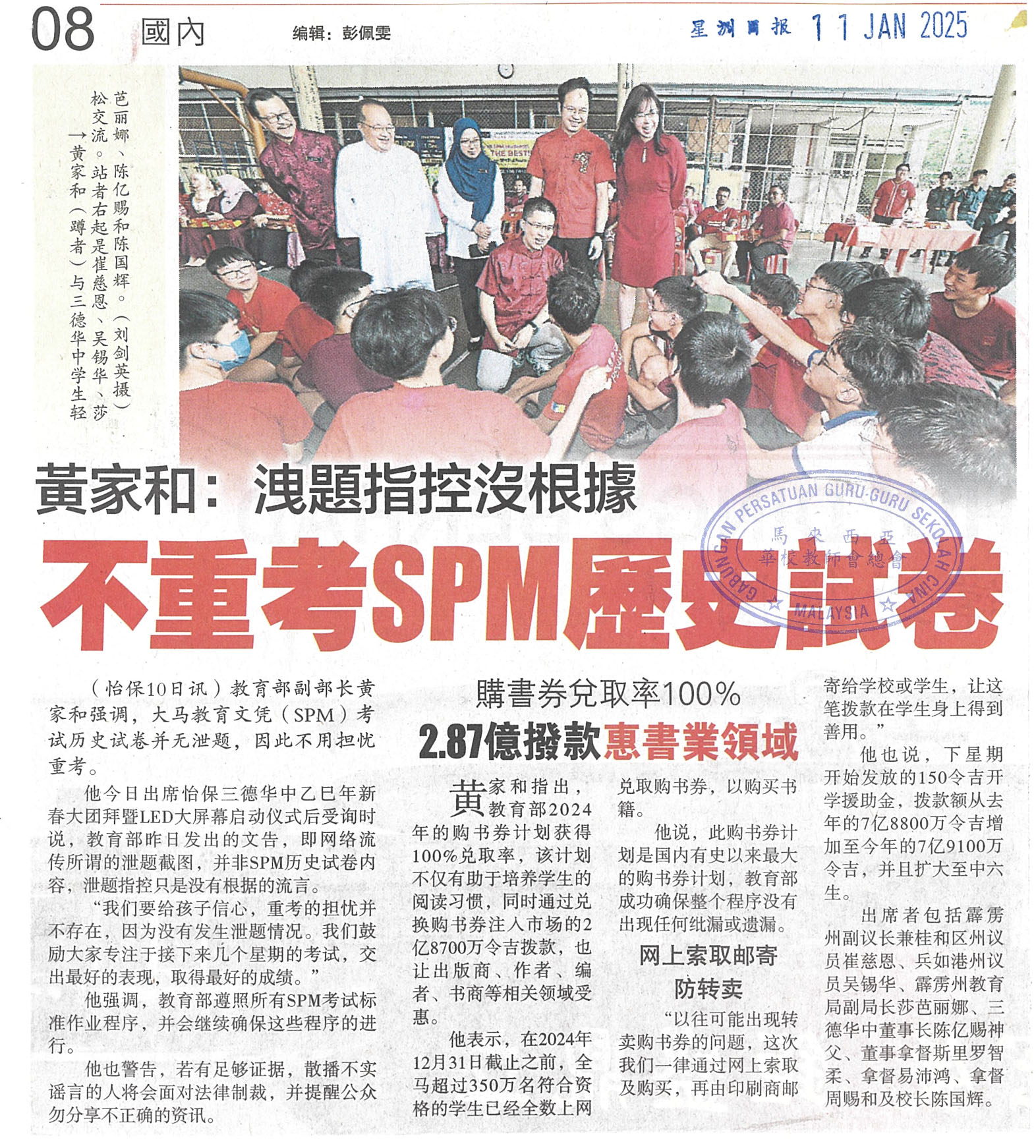 黄家和:泄题指控没根据 不重考SPM历史试卷 WhatsApp 上一篇文章: 董教总:租借充华小收入 礼堂禁酒 剥夺华社权益 上一页 下一篇文章: 微小合并非教育部选项 黄家和:不关闭合并任何华小 下一页
