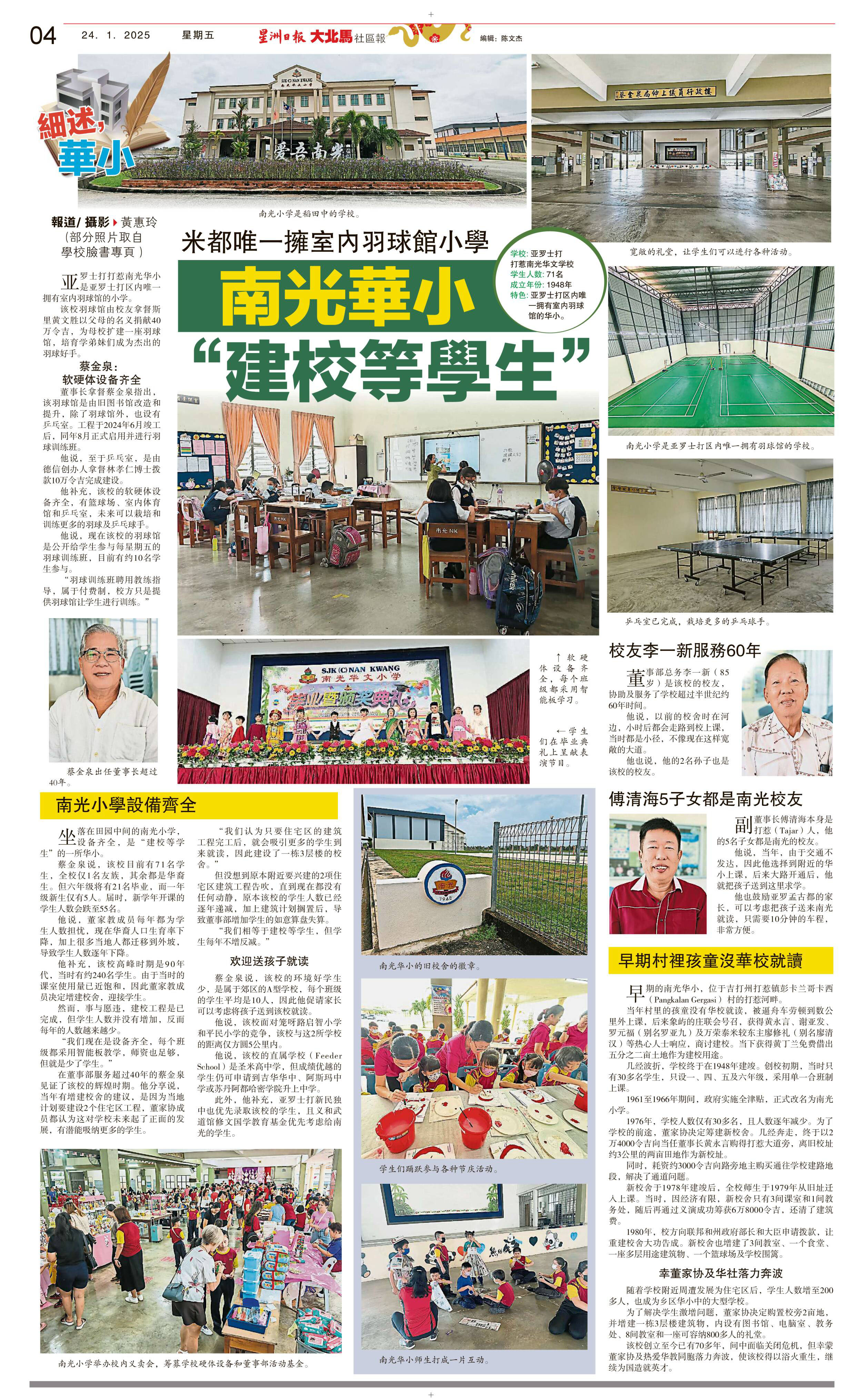 米都唯一拥室内羽球馆小学 南光华小“建校等学生”
