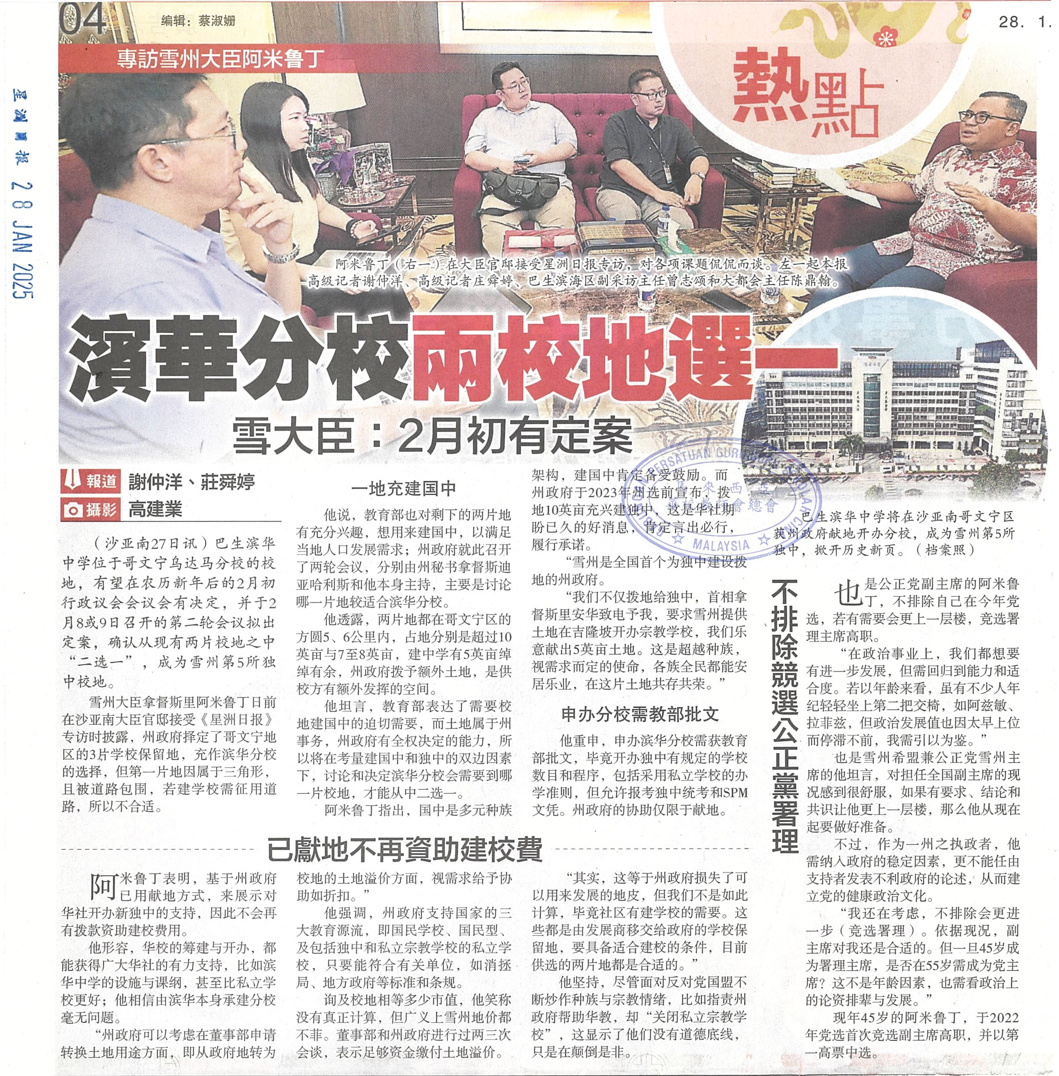 滨华分校两校地选一·雪大臣:2月初有定案
