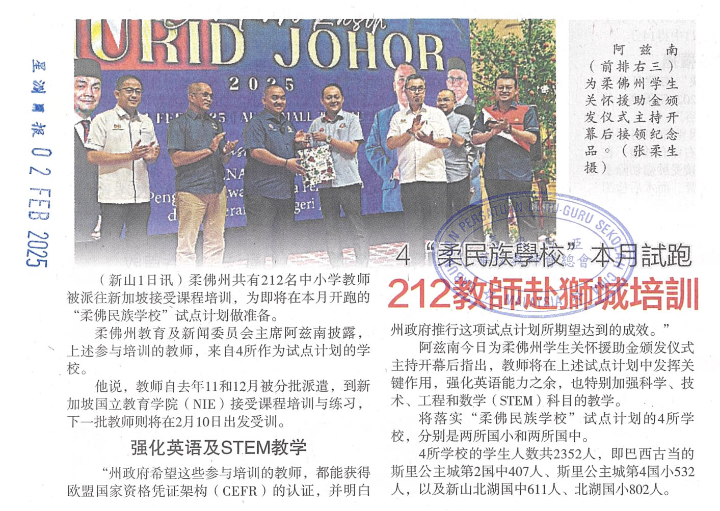 4“柔民族学校”本月试跑·212教师赴狮城培训