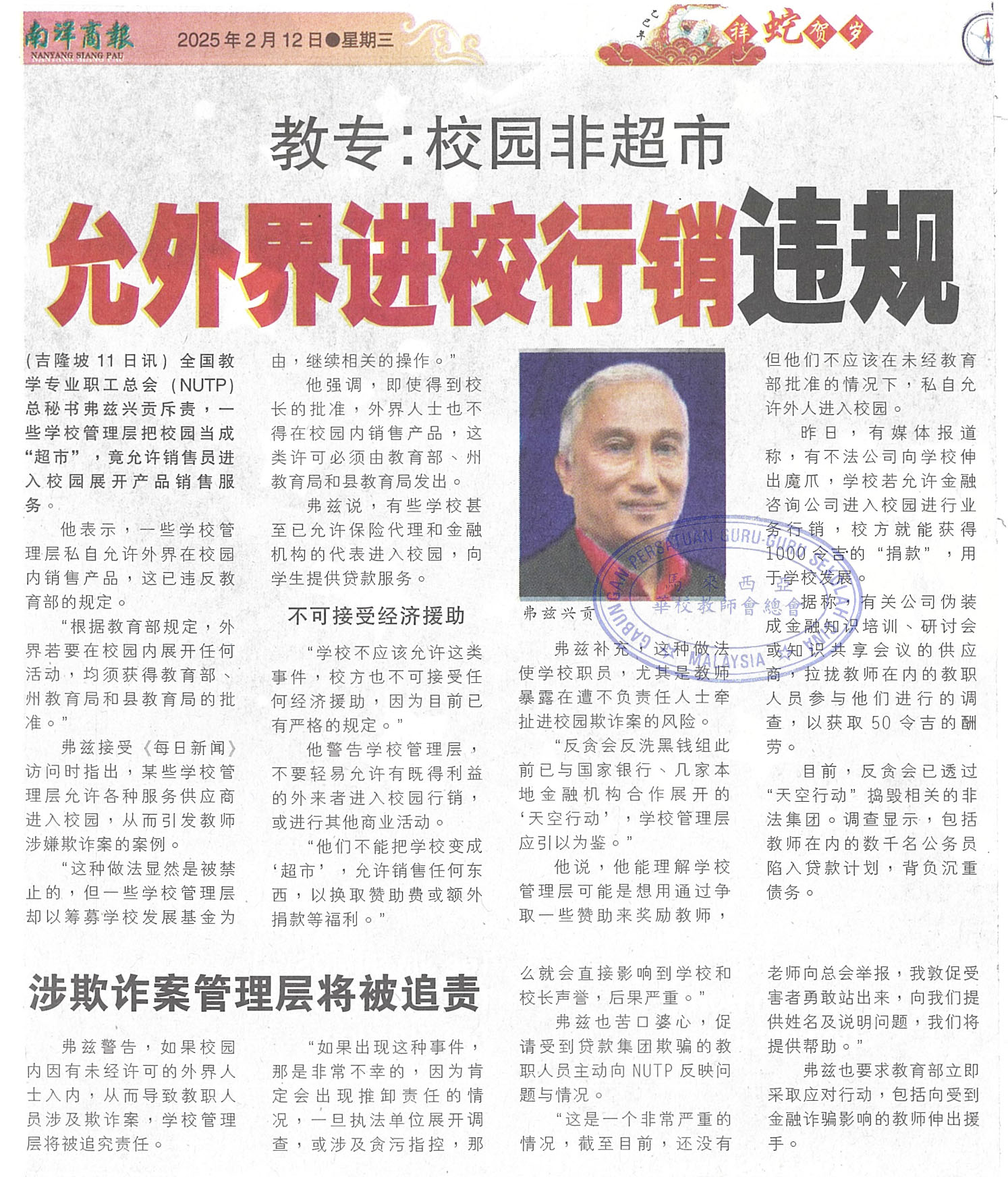教专:校园非超市,允外界进校行销违规