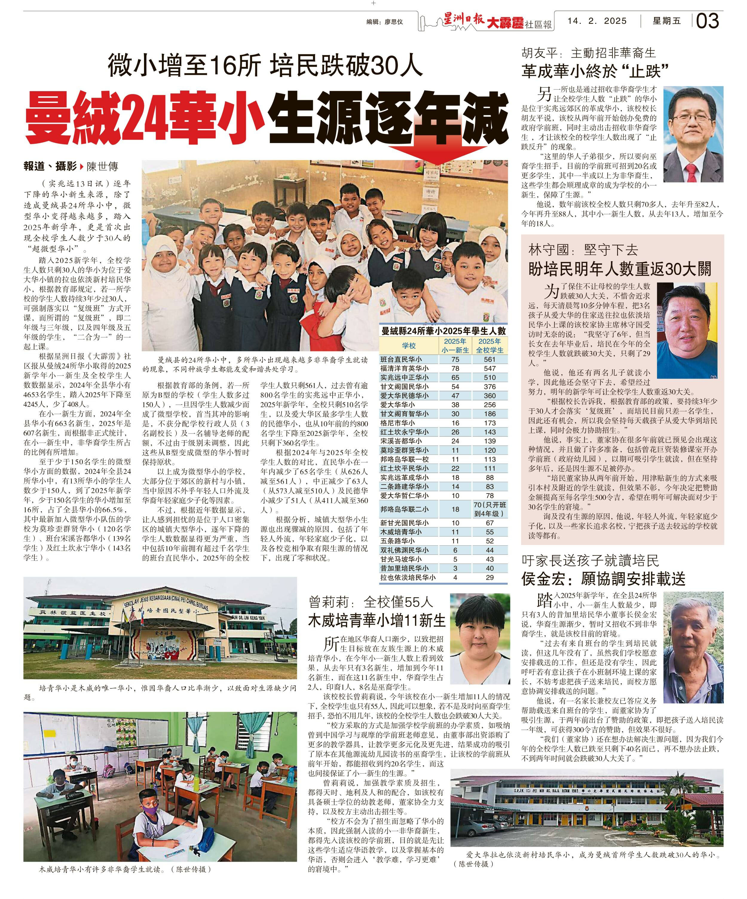 微小增至16所 培民跌破30人 曼绒24华小生源逐年减 WhatsApp 上一篇文章: 新币太诱人!柔逾900人弃考SPM越堤打工 上一页 下一篇文章: 空窗5年靠友族”续命“ 麻坑新中迎1华裔新生 下一页