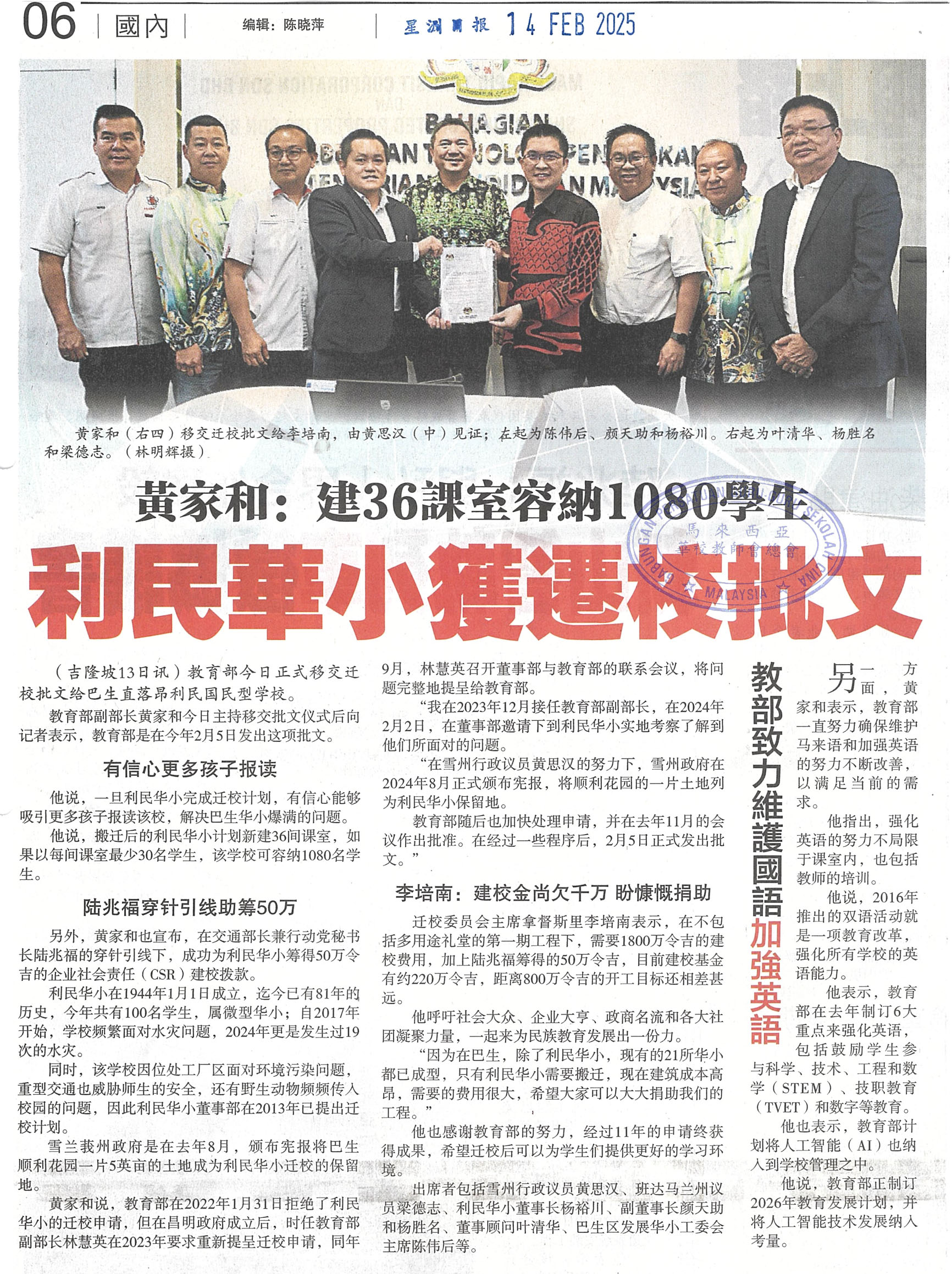 黄家和:利民华小获迁校批文,建36课室容纳1080学生 WhatsApp 上一篇文章: 吉二华小没开学没新生 - 南民:首次 指南:连2年 上一页 下一篇文章: 新币太诱人!柔逾900人弃考SPM越堤打工 下一页