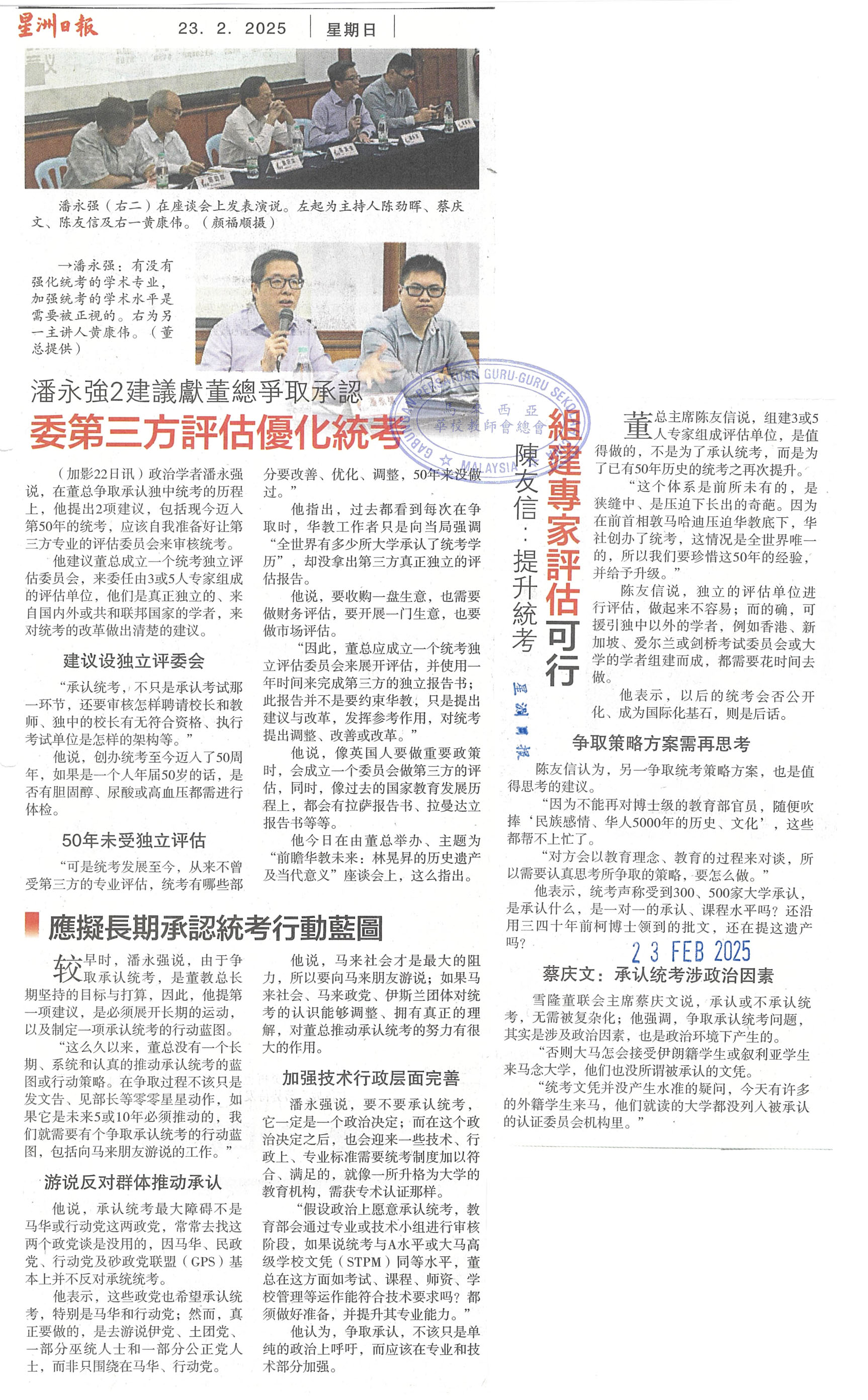 潘永强2建议献董总争取承认   委第三方评估优化统考