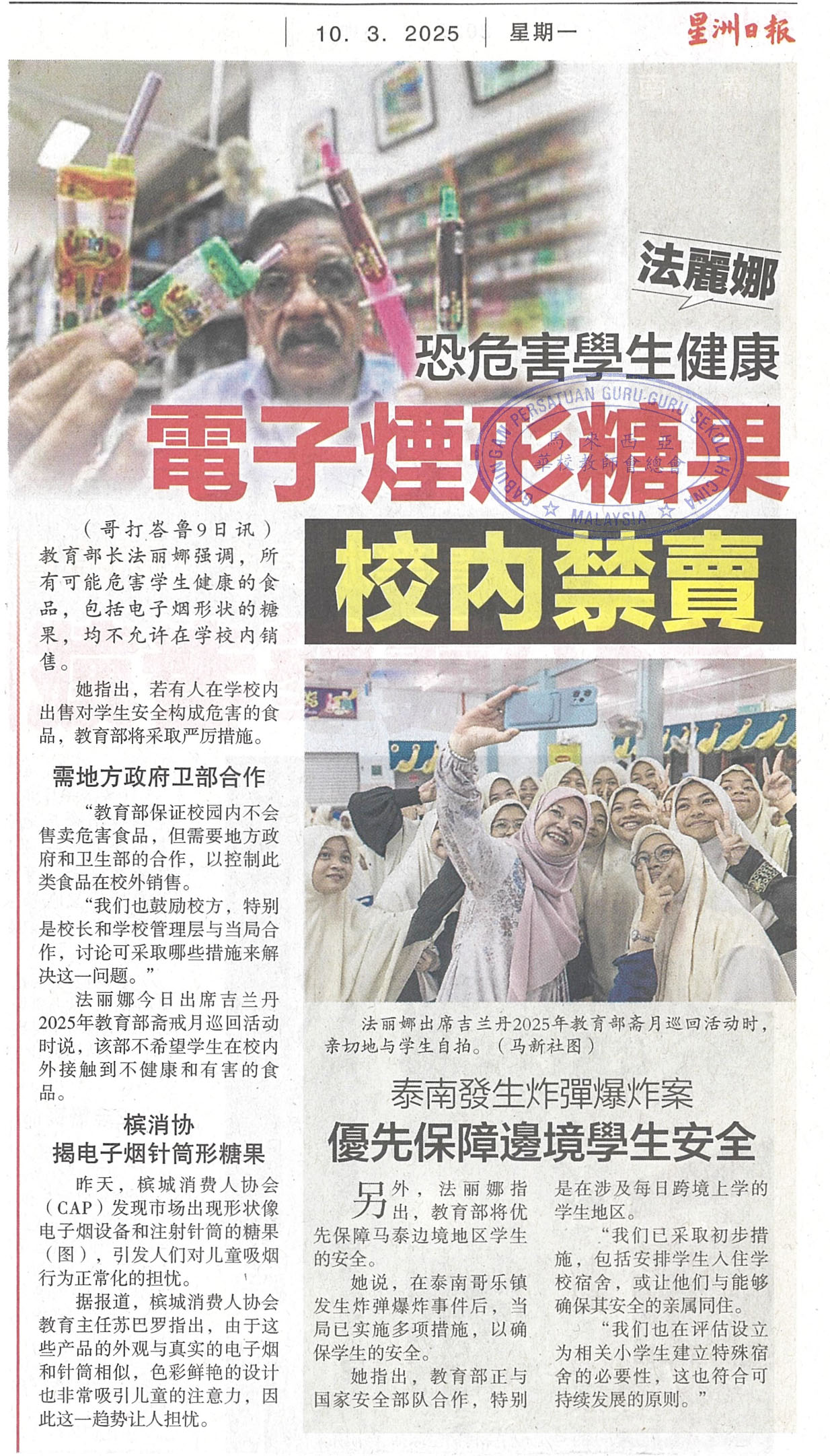 法丽娜:恐危害学生健康,电子烟形糖果校内禁卖