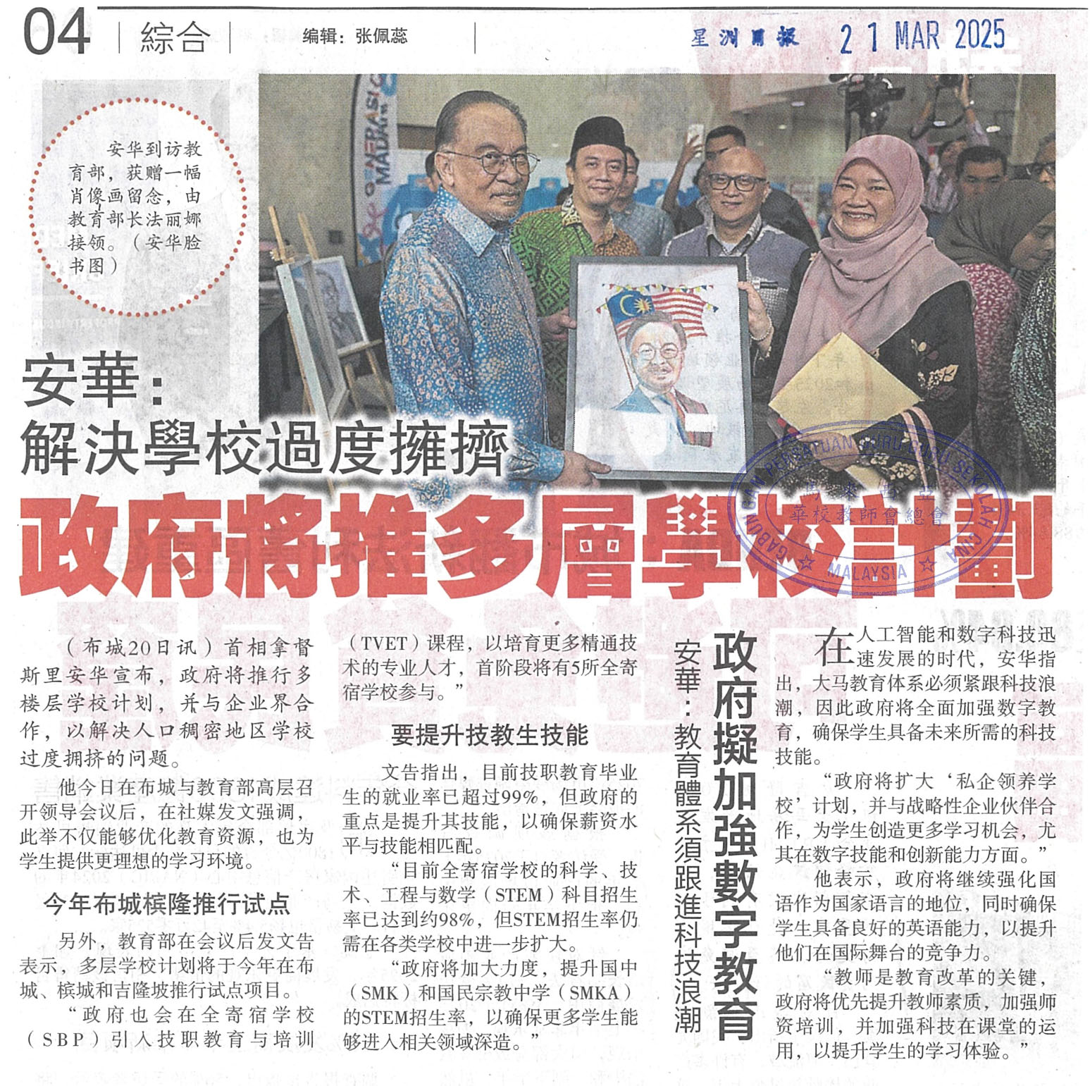 安华:解决学校过度拥挤,政府将推多层学校计划