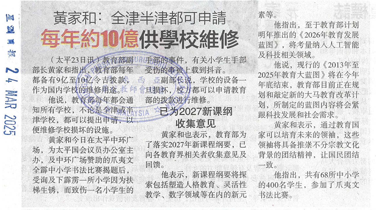黄家和:全津半津都可申请,每年约10亿供学校维修