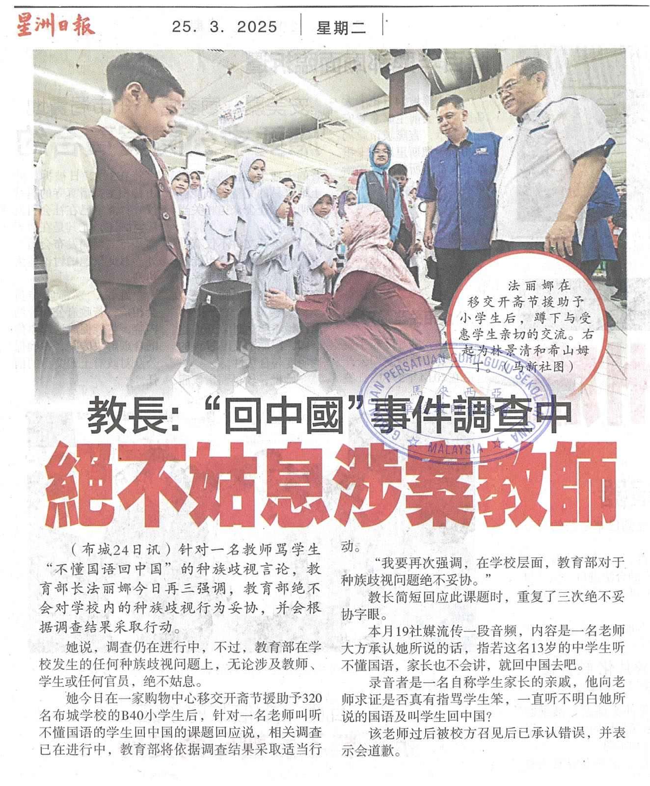 教长:“回中国”事件调查中,绝不姑息涉案教师