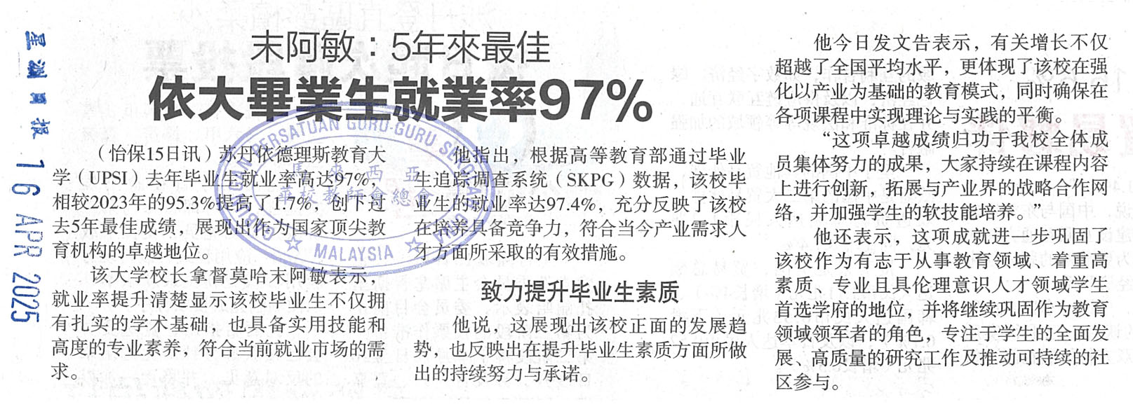 末阿敏:5年来最佳,依大毕业生就业率97%