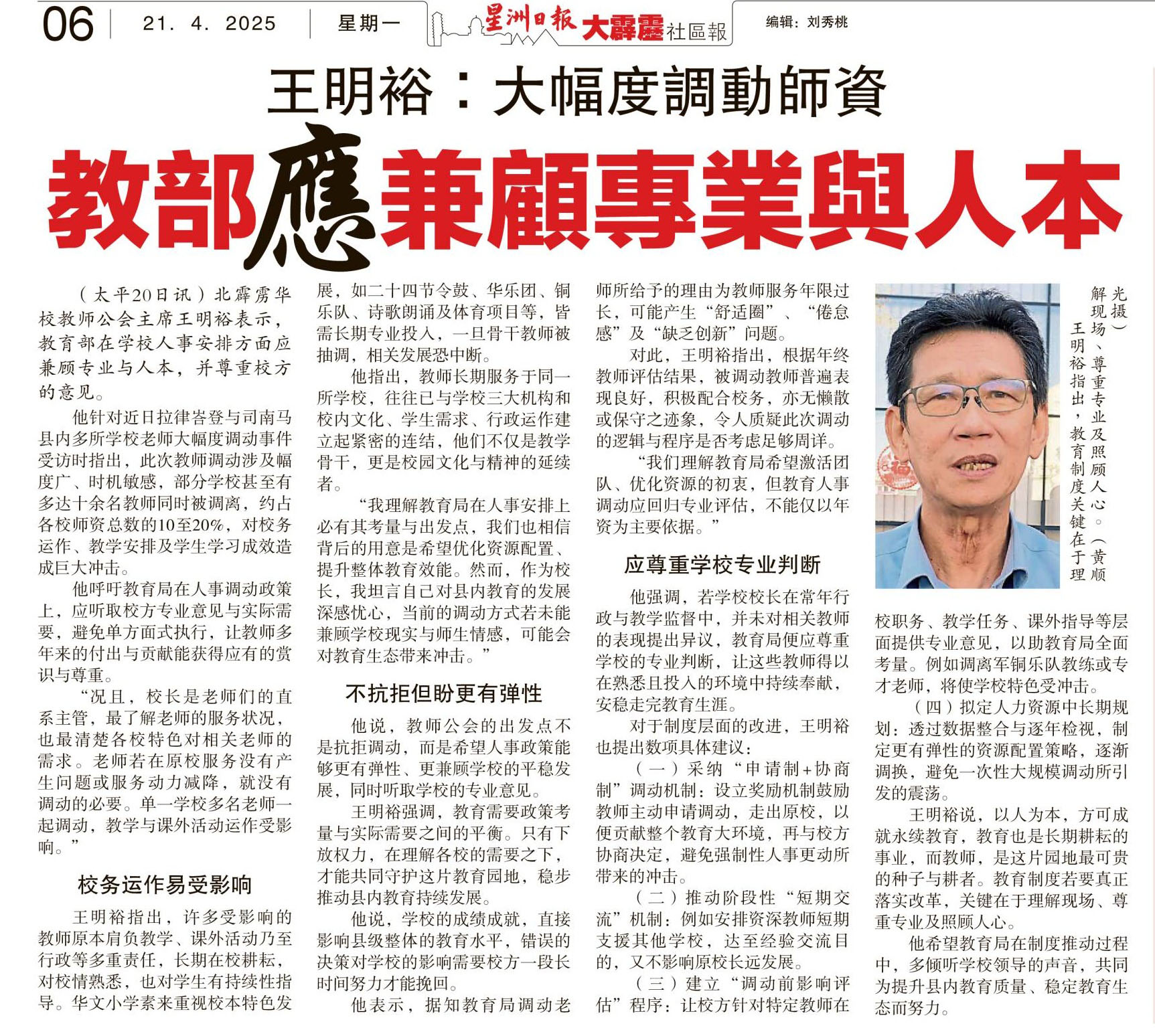 王明裕:大幅度调动师资 教育部应兼顾专业与人本