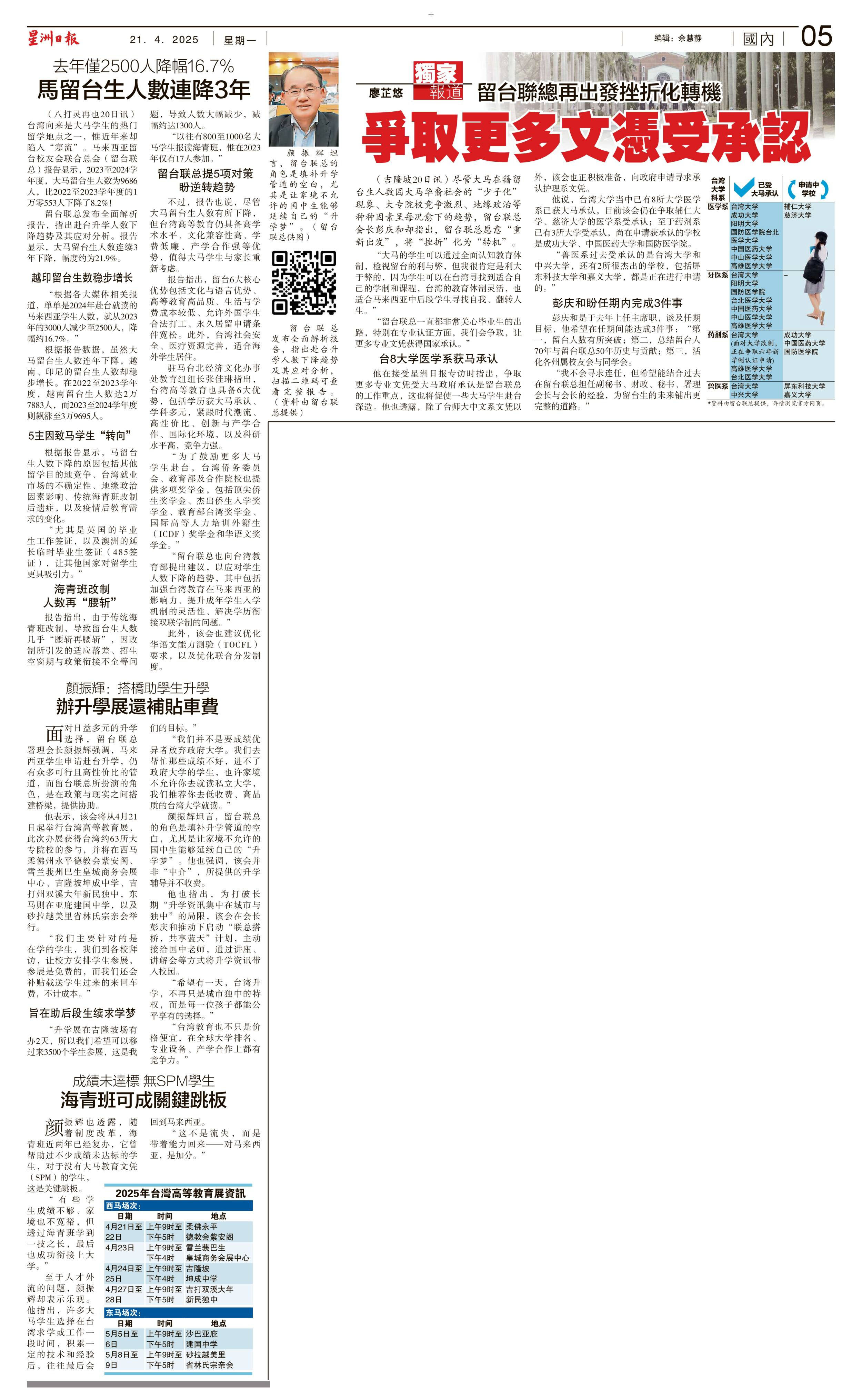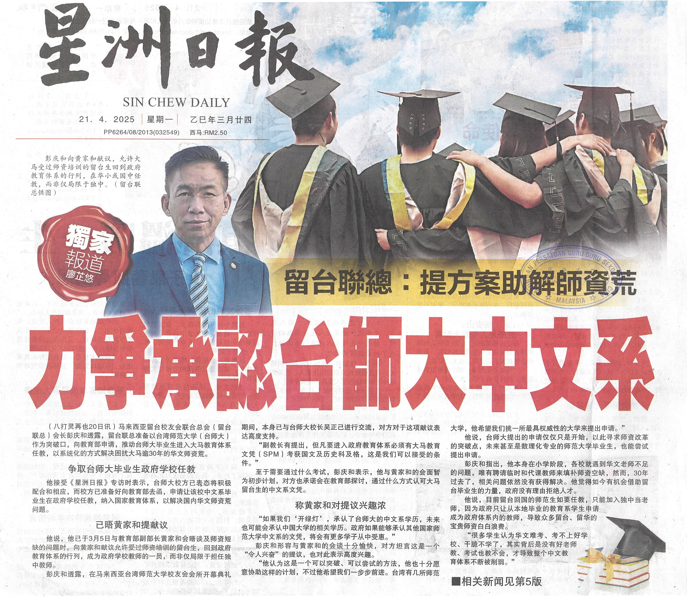 留台联总:提方案助解师资荒,力争承认台师大中文系 WhatsApp 上一篇文章: 王明裕:大幅度调动师资 教育部应兼顾专业与人本 上一页 下一篇文章: 黄绍轩:彭亨 41华小人数少于150人 华小生比10年前22.4% 下一页