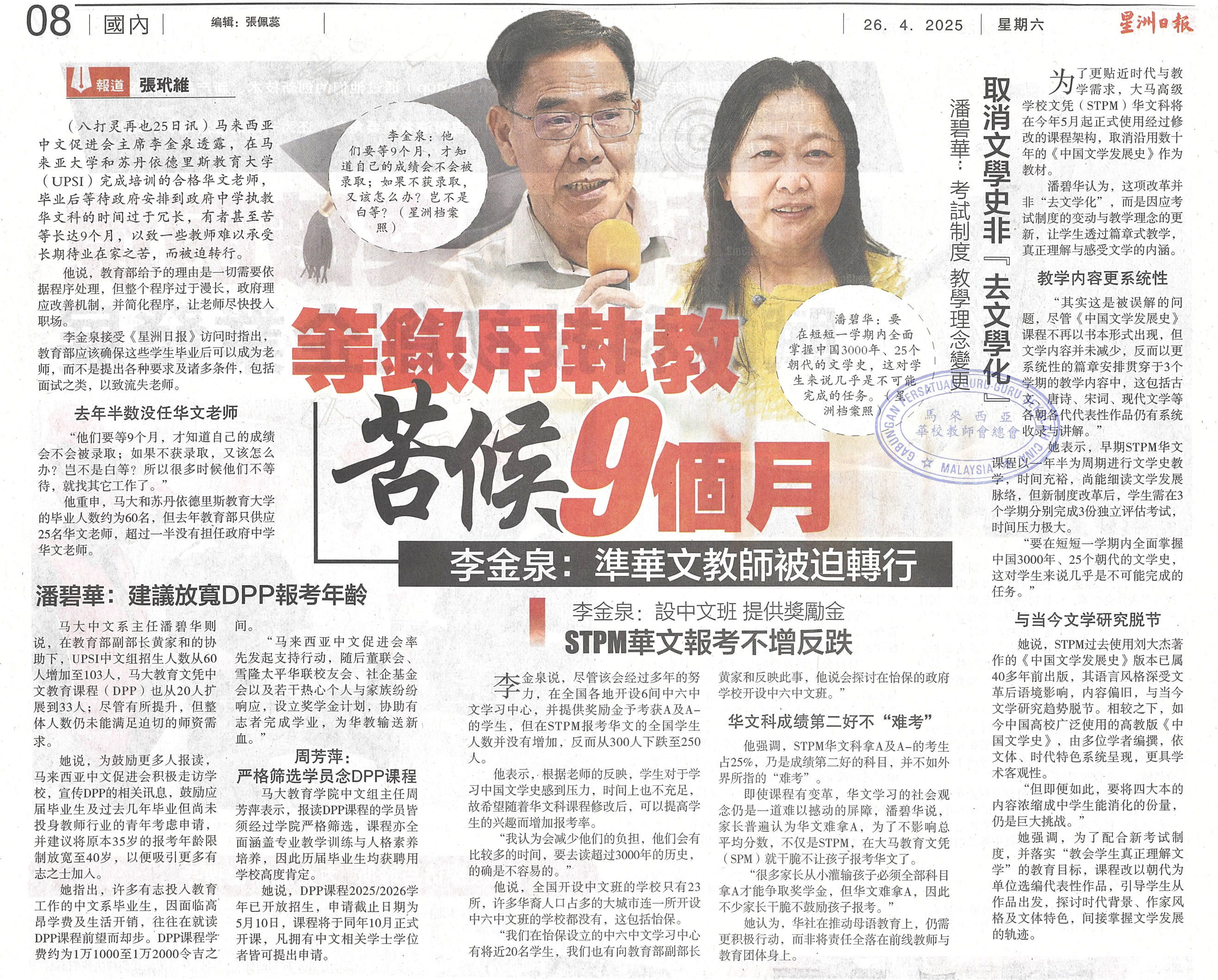 李金泉:准华文教师被迫转行,等录用执教苦候9个月 WhatsApp 上一篇文章: 从“满江红”到全科及格,校长亲自教后进生蜕变 上一页 下一篇文章: 内部消息:免干扰课堂秩序,“特殊情况可提前申请” 下一页