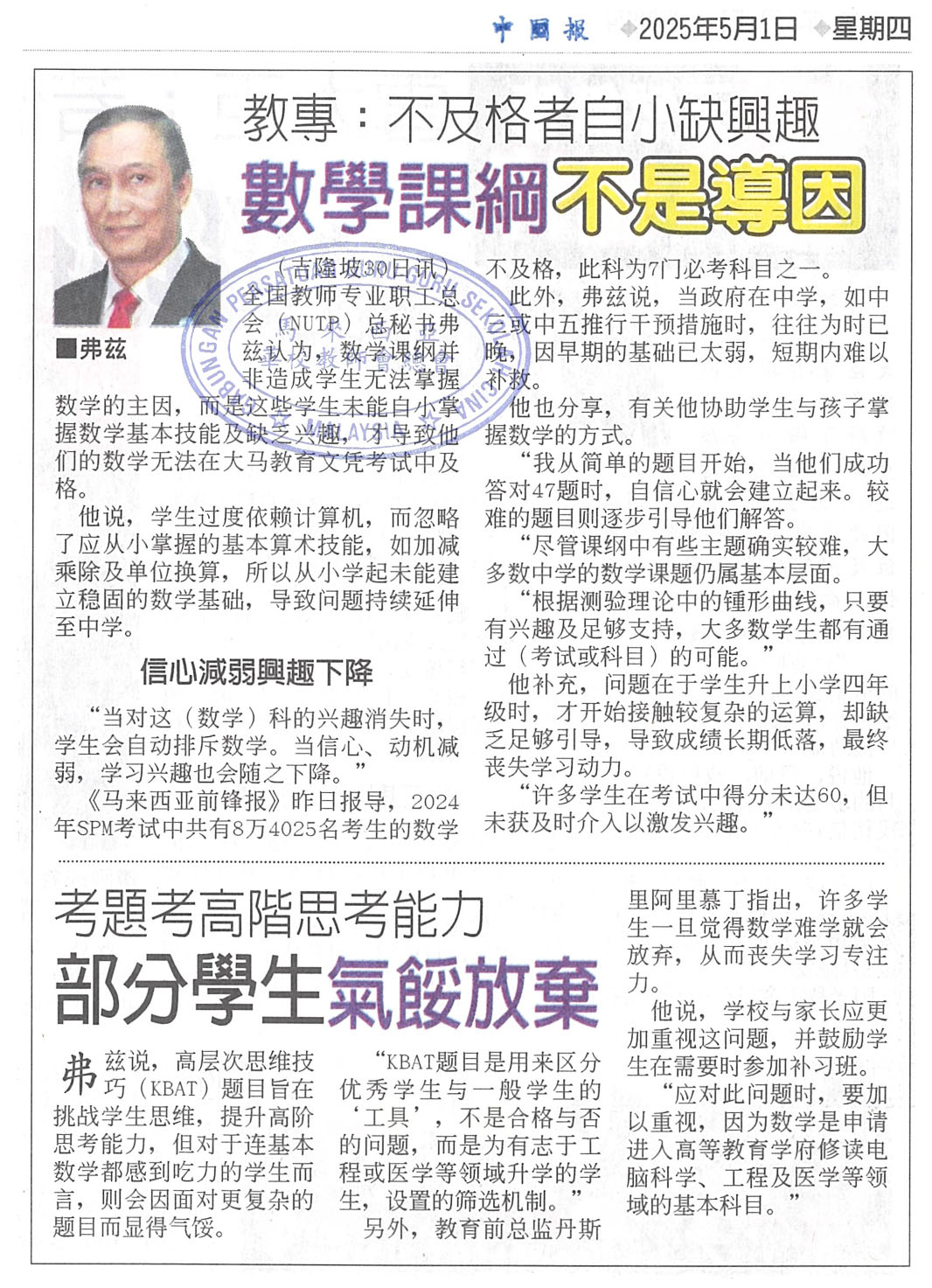 教专:不及格者自小缺兴趣,数学课纲不是导因