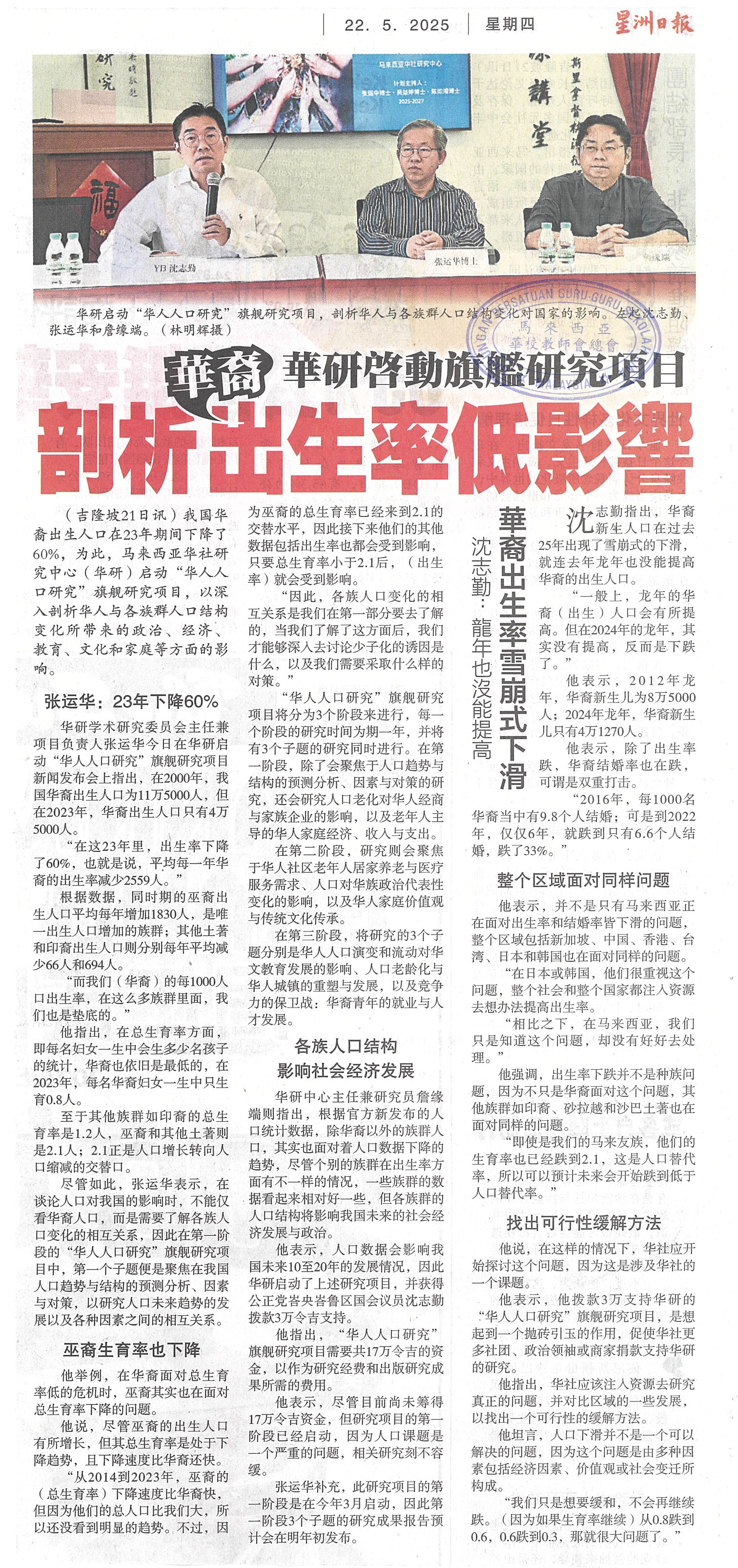 华研启动旗舰研究项目,剖析华裔出生率低影响 WhatsApp 上一篇文章: 班丹中华华小设备完善·张耀汉:有信心6月10可开课 上一页 下一篇文章: 教师任满2年无条件申请调职·教总:须有全盘规划,免影响郊区学校师资 下一页