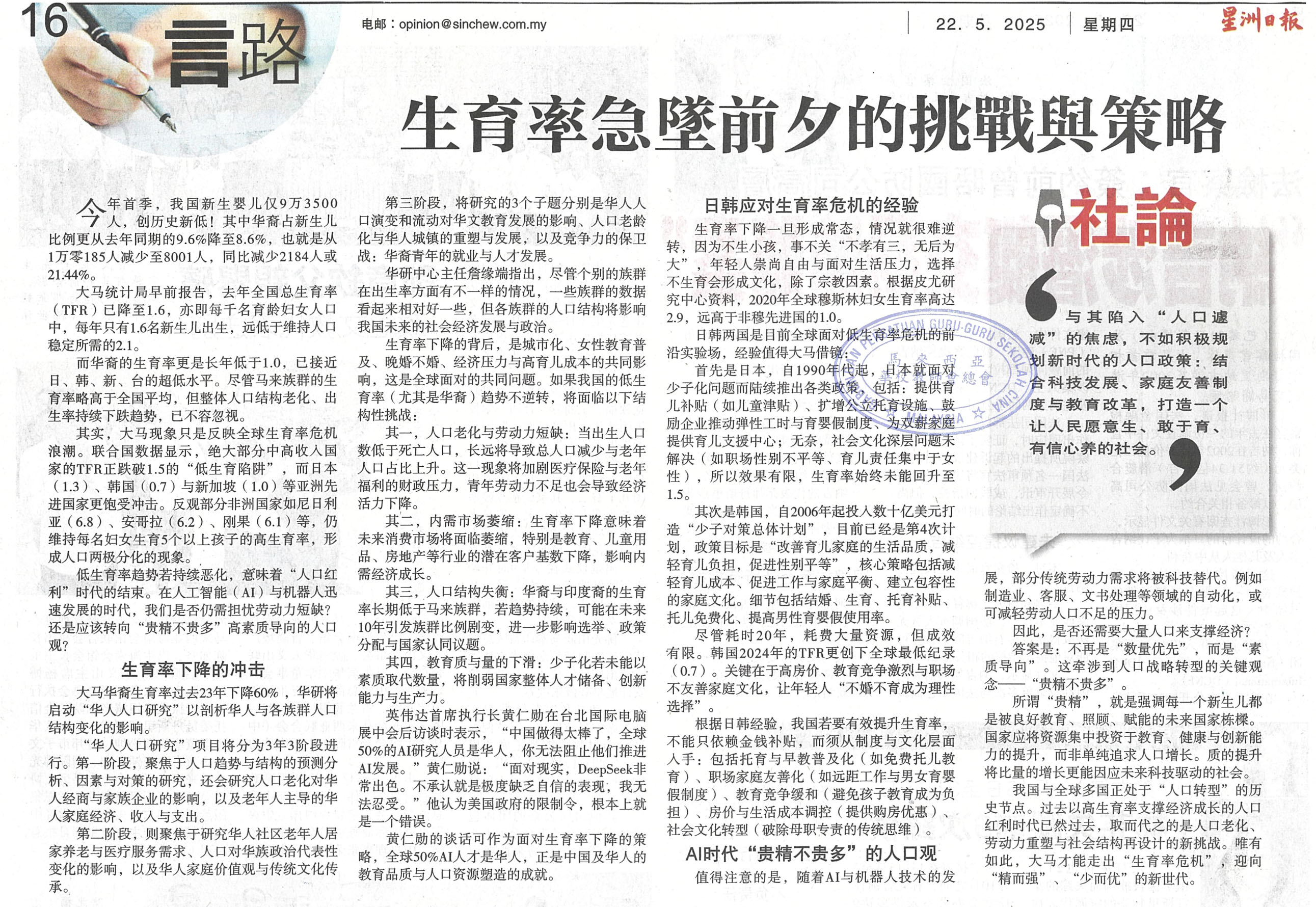 星洲日报社论:生育率急坠前夕的挑战与策略