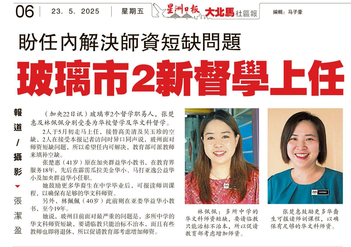 盼任内解决师资短缺问题 玻璃市2新督学上任