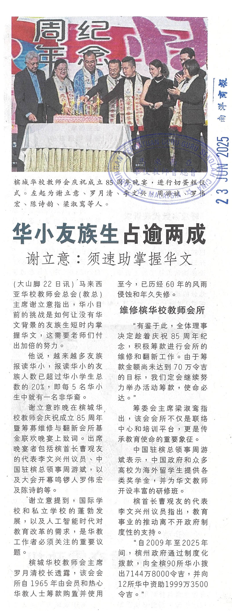 华小友族生占逾两成·谢立意:须速助掌握华文